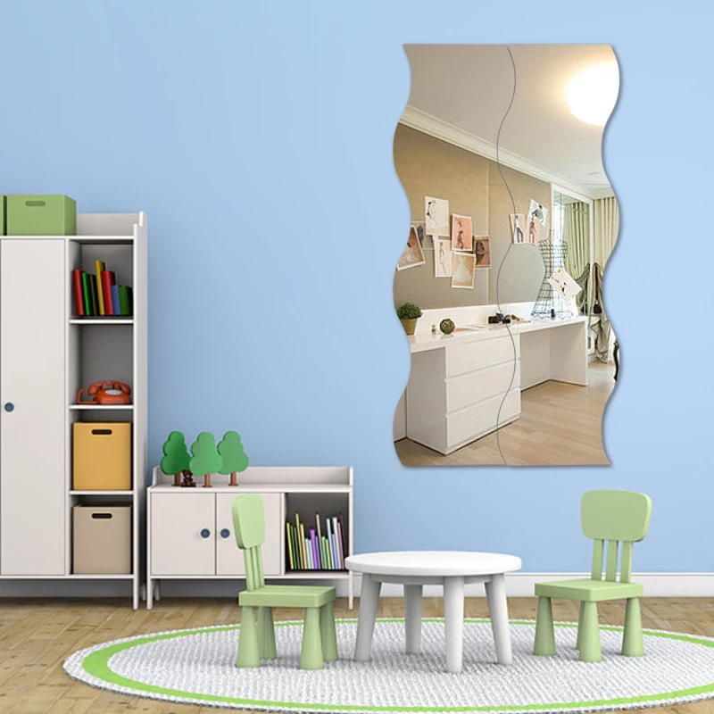 6x Пластиковые настенные плитки с зеркальным стеклом волнистые края наклейки на стену мозаика для дома палки деколи самоклеющиеся отличительные 17*19 см водонепроницаемые