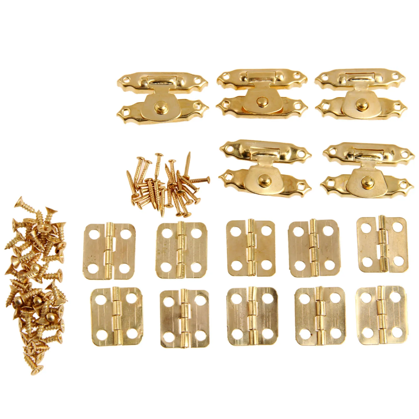 Винтажные Золотые круглые петли 15 шт.лот, железные декоративные + антикварные защелки, замки для шкатулки, тумблер, мебельная фурнитура, фурнитура
