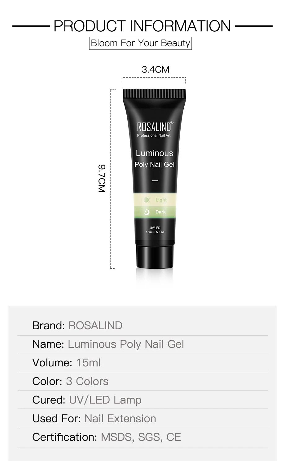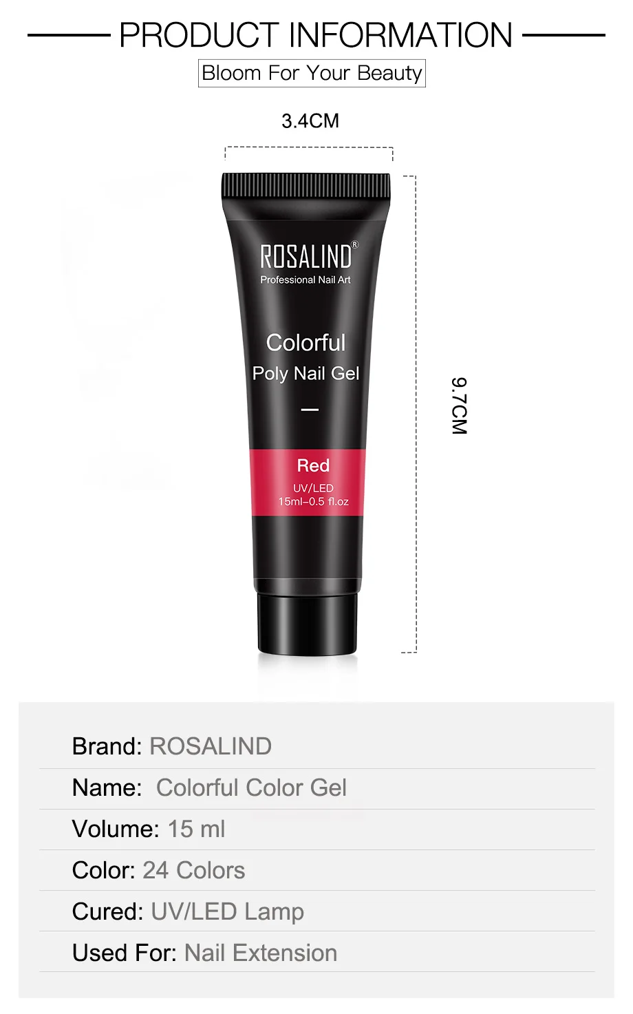 Полимерный гель для наращивания ногтей ROSALIND, 15 мл, Полупостоянный лак для наращивания ногтей