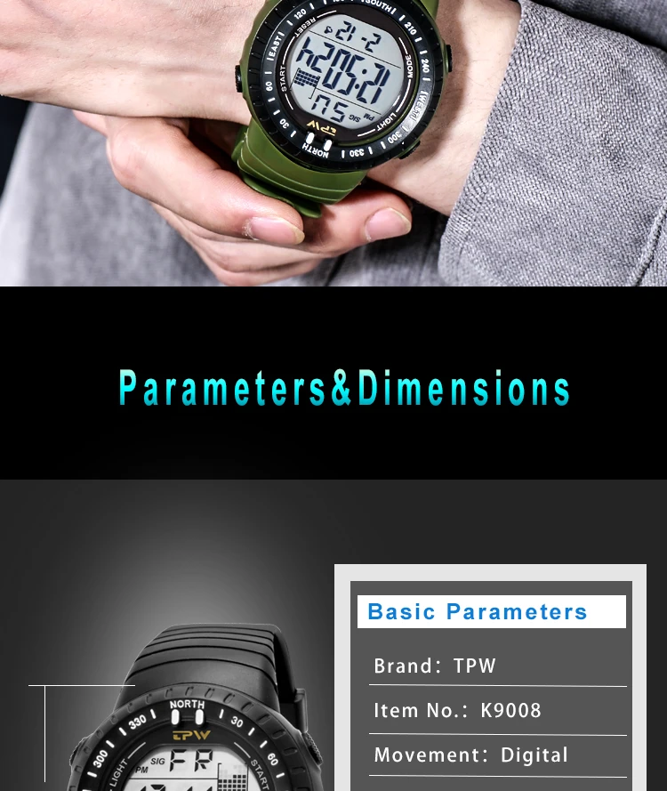Наружные цифровые часы спортивные 50 м водостойкий плавательный светодиодный с подсветкой для мужчин с большим циферблатом