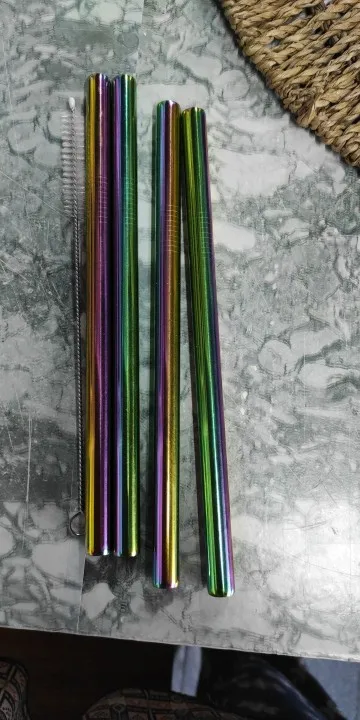 Очень классные многоразовые трубочки на замену соломинкам из полистирола. Эти - толстые, диаметр 12 мм, по ходят для густых напитков и даже Bubble tea. Доставка не долгая.