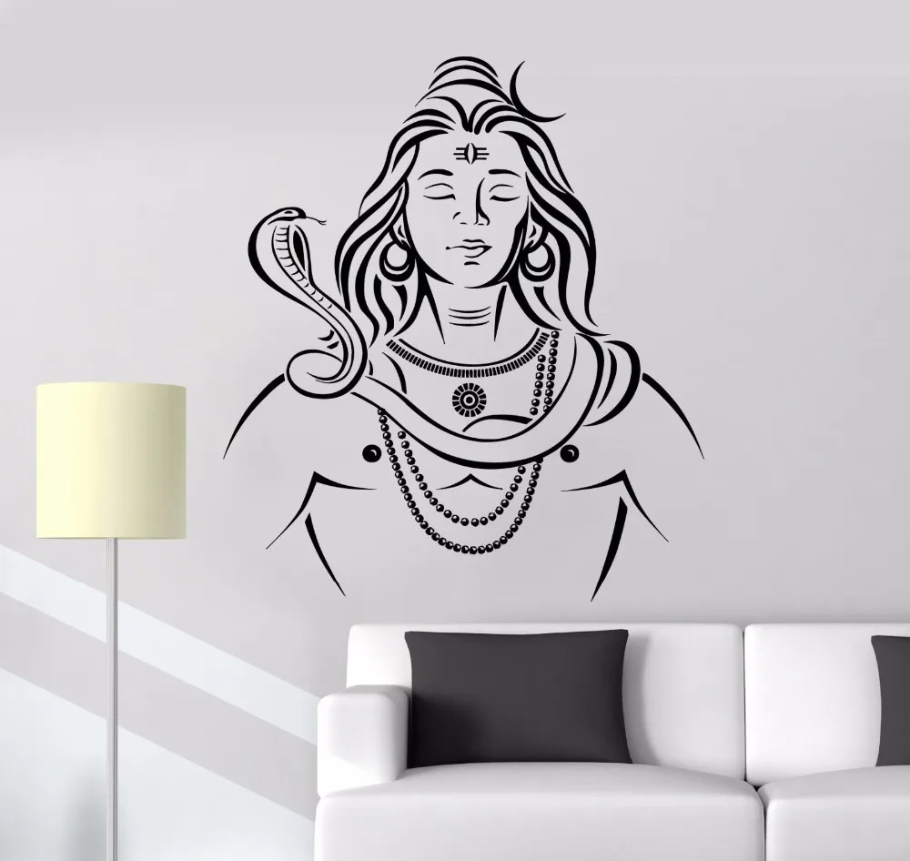 Художественная Наклейка на стену, индийский бог, украшение на стену, религия, домашний декор, модная наклейка, Виниловый Съемный постер, лорд Шива хиндуизм LY166