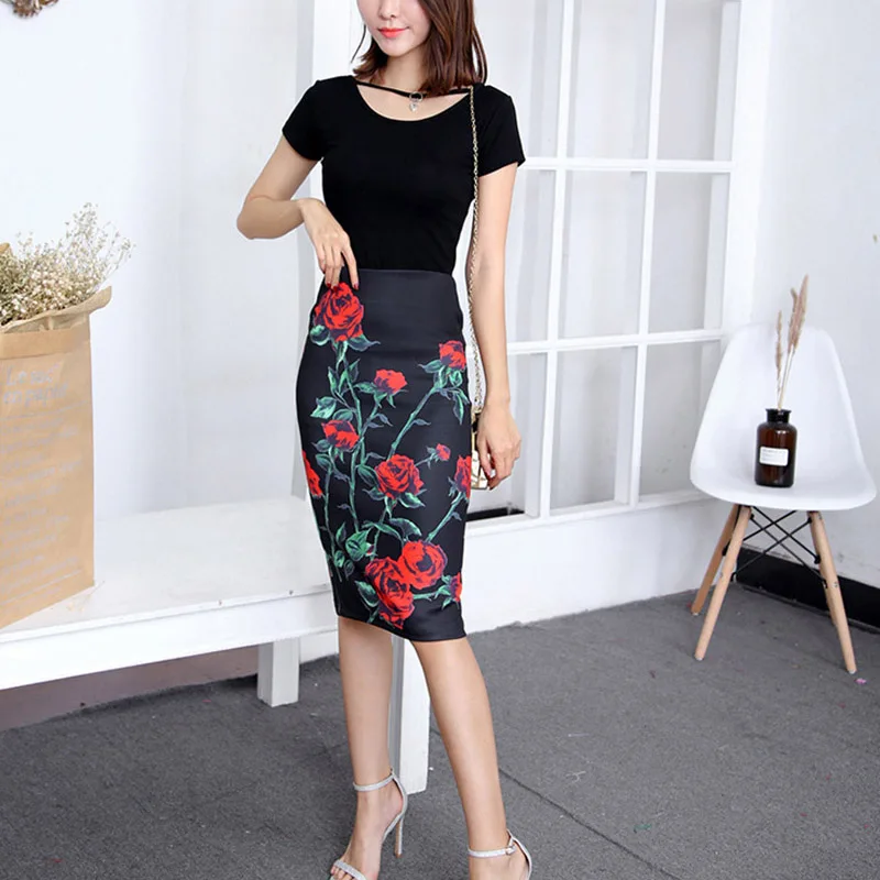 Женская юбка-карандаш средней длины, юбка-футляр с цветочным принто...