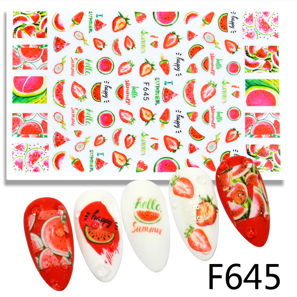 3D Летний Фруктовый слайдер на ногти, наклейки с буквами, наклейки ...