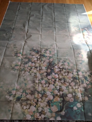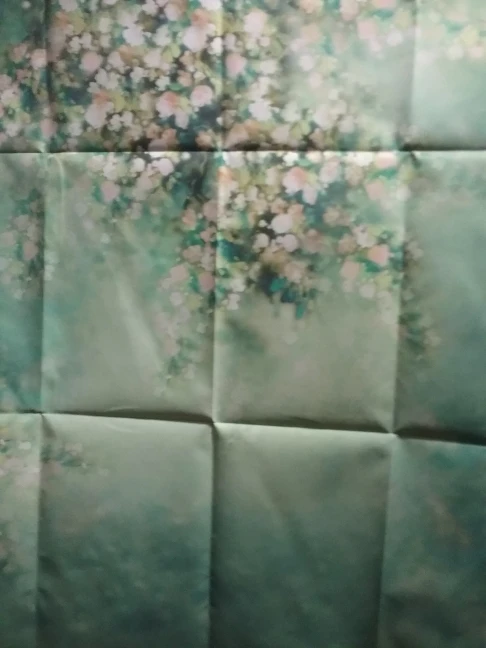 отличный фон, заказывала 23.03, получила 1.04 Пермский край. рисунок немного бледнее чем на фото, цветы чуть расплывчатые, но мне так и нужно было. по сгибам заломов и разрывов нет, паром разгладятся.