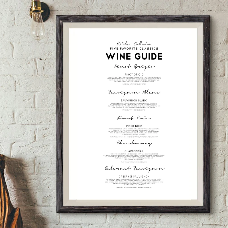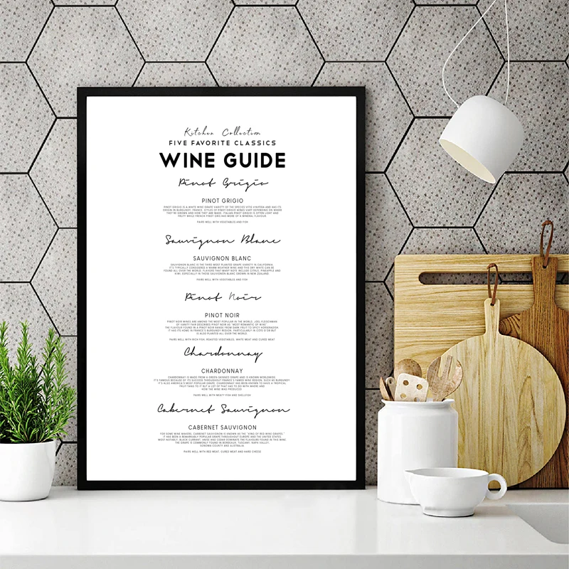 Винная гид, вывеска, печать на холсте, декор для кухни, подарок для влюбленных вина, черный, белый минималистичный плакат, картина для бара, ресторана, настенный художественный Декор