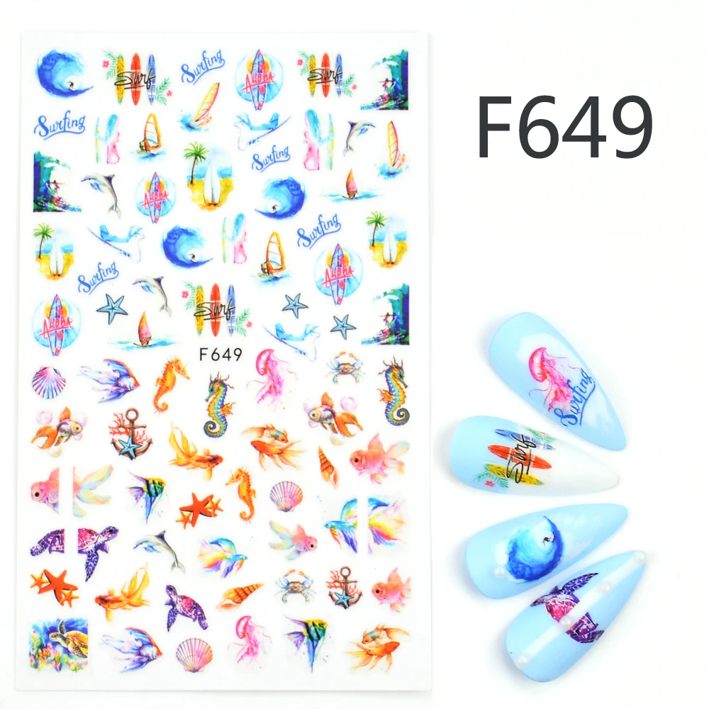 1 шт., наклейки для ногтей WUF 3D, наклейки для ногтей с цветами, б...