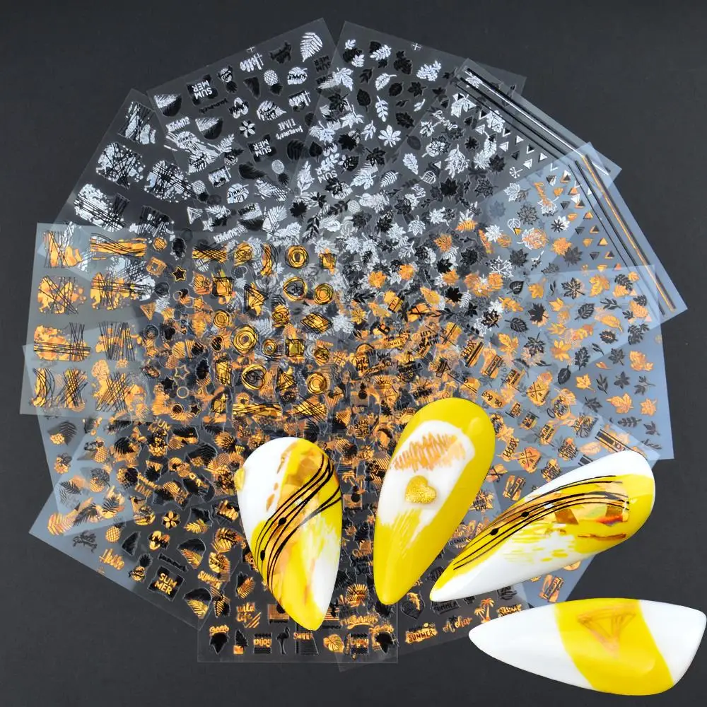 1 шт. 3D ЗолотыеWiht черные бронзирующие наклейки на ногти цветок м...