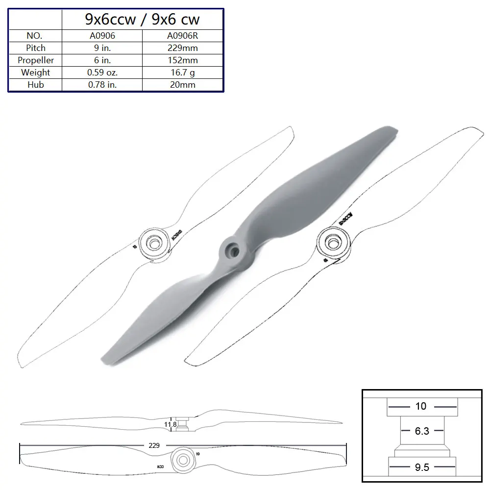9-дюймовый 9x6 нейлоновый Стекловолоконный прямой привод CW CCW Про...