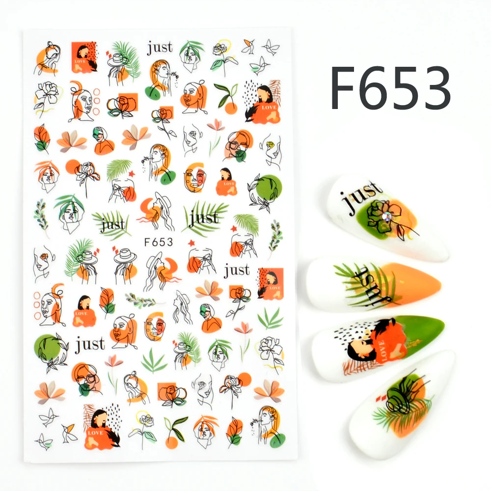 1 шт., наклейки для ногтей WUF 3D, наклейки для ногтей с цветами, буквами, дизайнерские Слайдеры для ногтей, очаровательные клейкие украшения для маникюра и ногтевого дизайна, обертывания, Типсы, 1 лист
