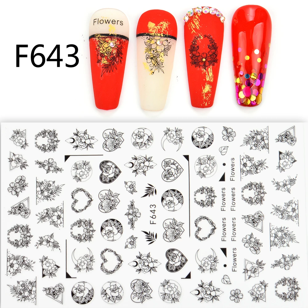 1 Стикеры для ПК, для дизайна ногтей, белые, черные цветочные листь...