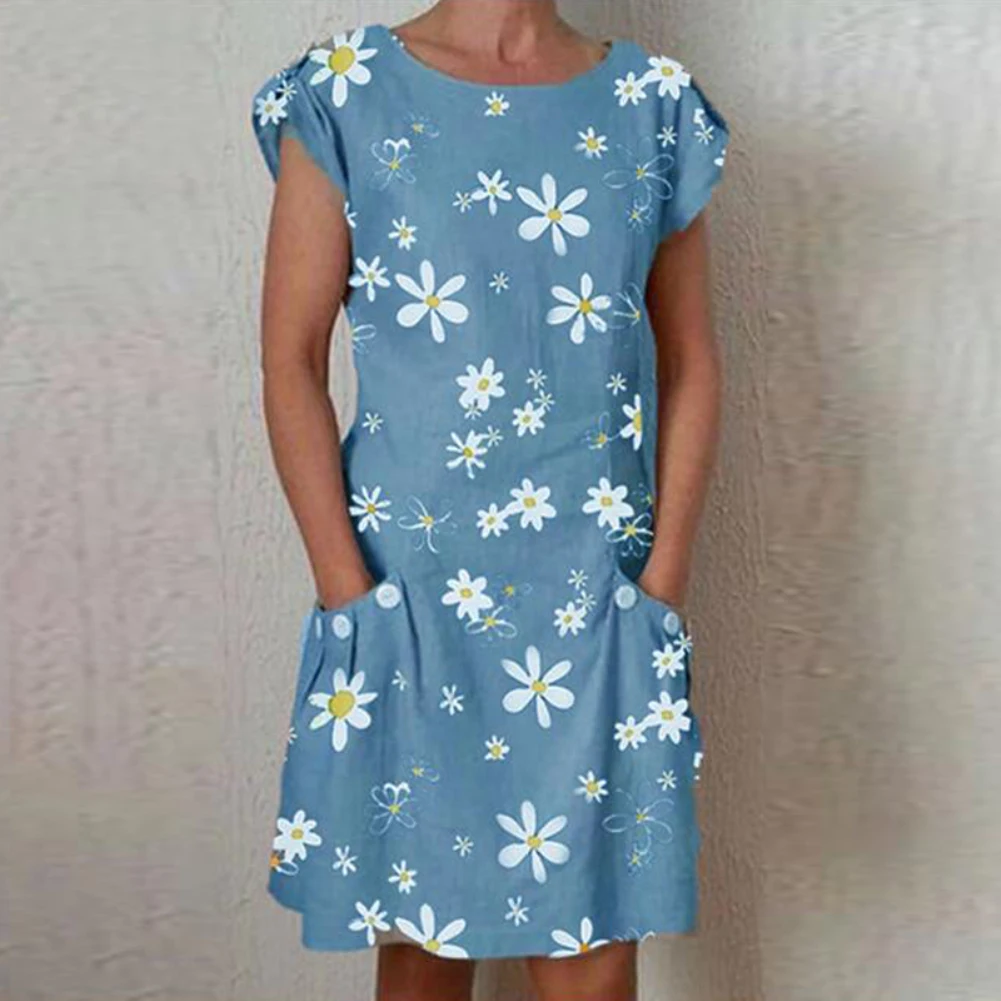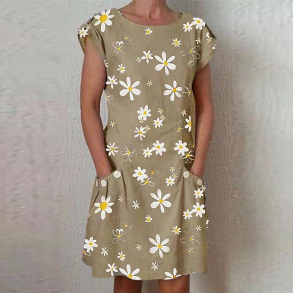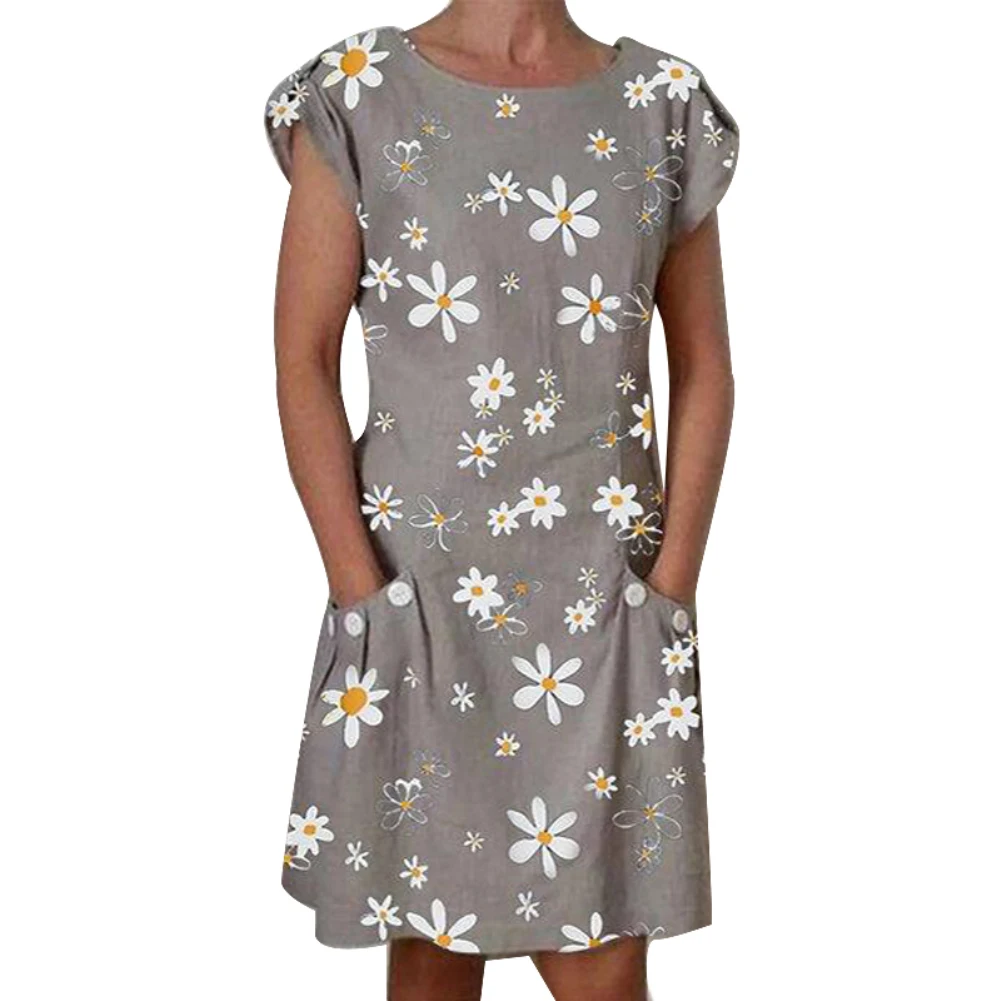 Женское Повседневное платье с круглым вырезом и коротким рукавом, платье с принтом Маргарита до колен, с карманами, легко сочетается с принтом
