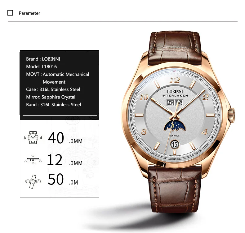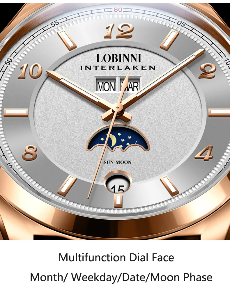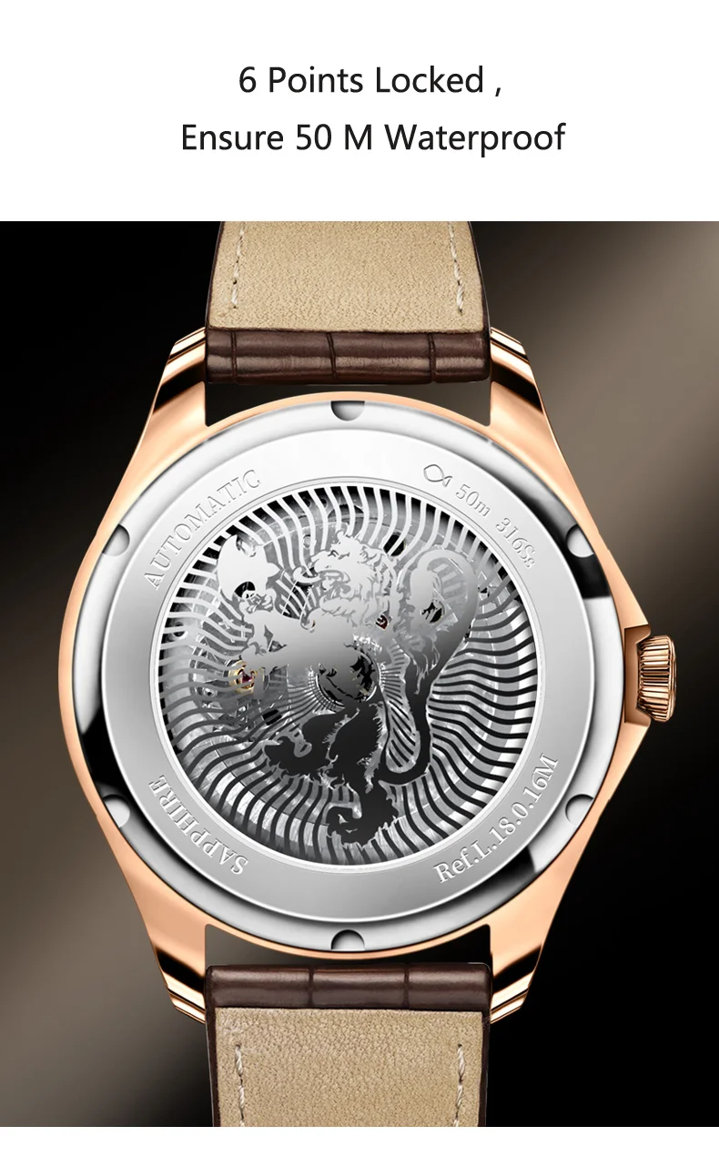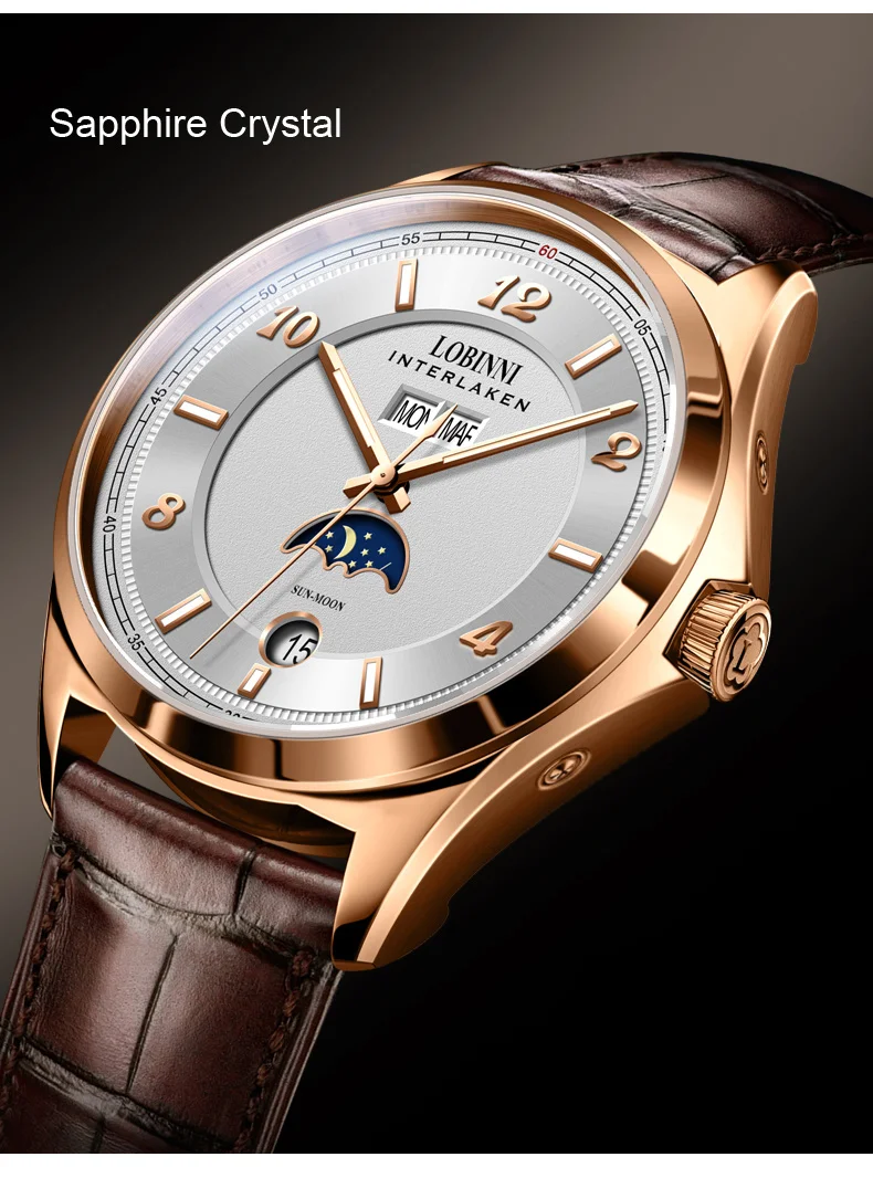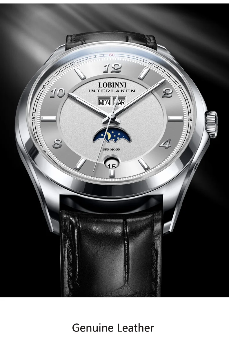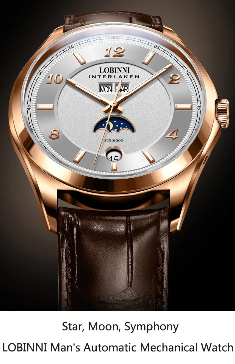 Часы LOBINNI Мужские механические, с автоподзаводом, с сапфировым стеклом, со светящимися стрелками, L18016