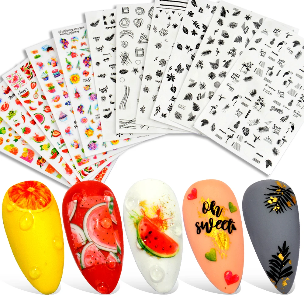 3D Летний Фруктовый слайдер на ногти, наклейки с буквами, наклейки ...