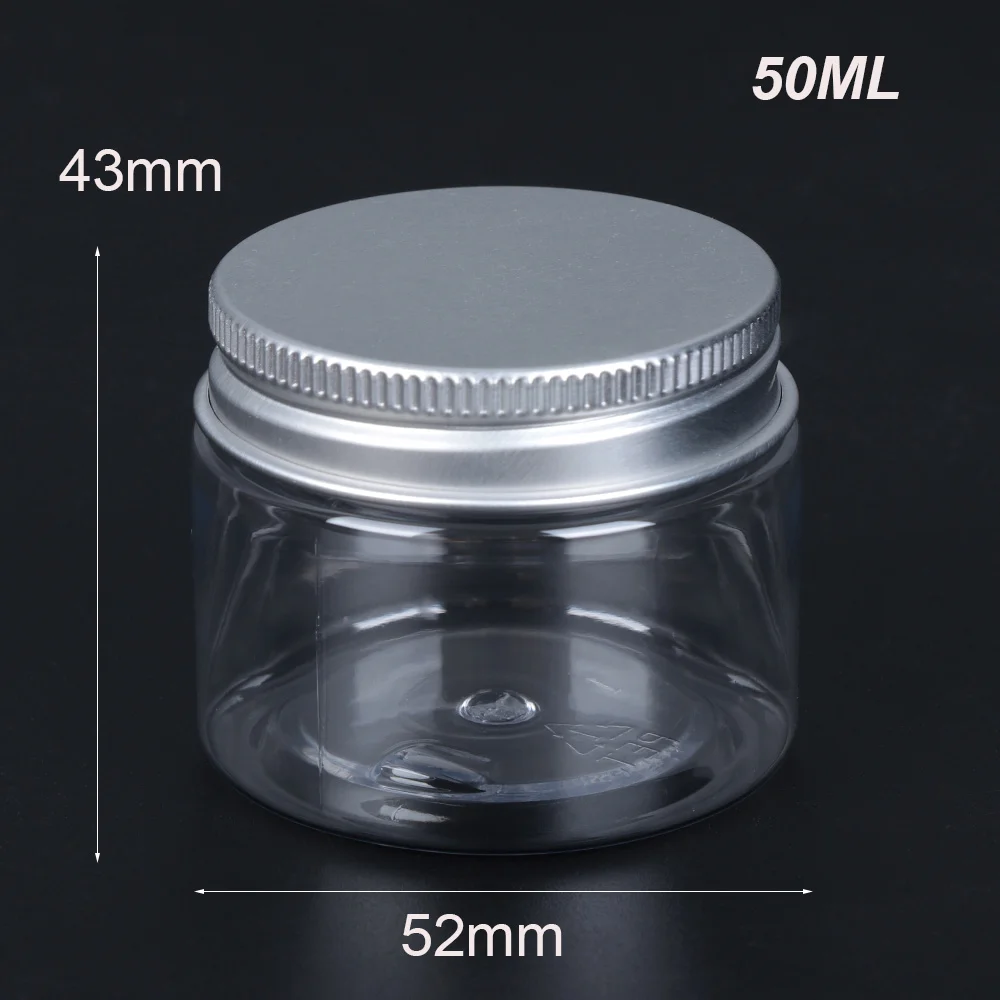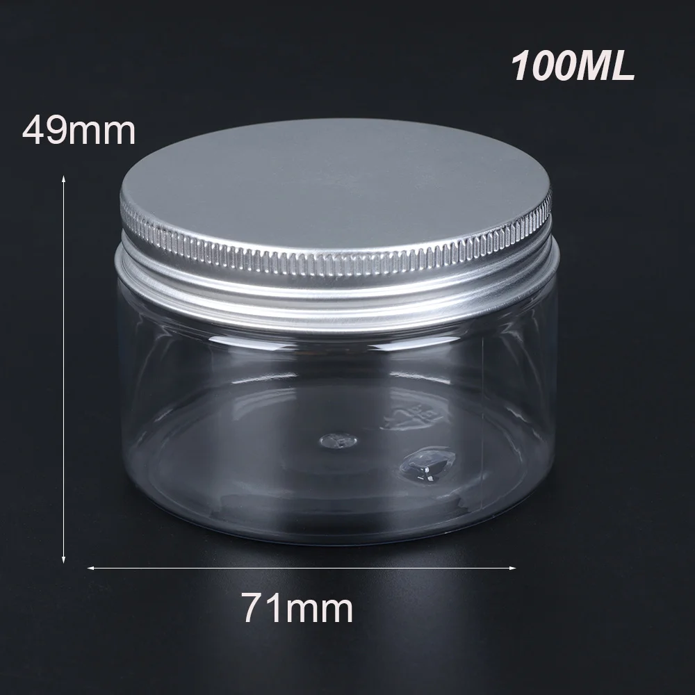 Прозрачная пластиковая емкость для хранения 30-250 мл, домашний контейнер для образцов пищи, пустая банка, алюминиевая крышка, косметический жестяной горшок баночка для бальзама для губ, масляный воск