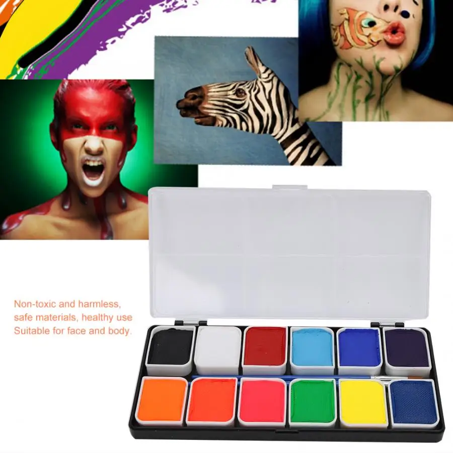 Макияж для тела, 12 цветов, краска для тела и лица на водной основе, для Хэллоуина, вечеринки, игровой веер, сделай сам, необычный макияж, пигмент для тела, краска для тела, макияж