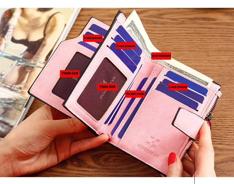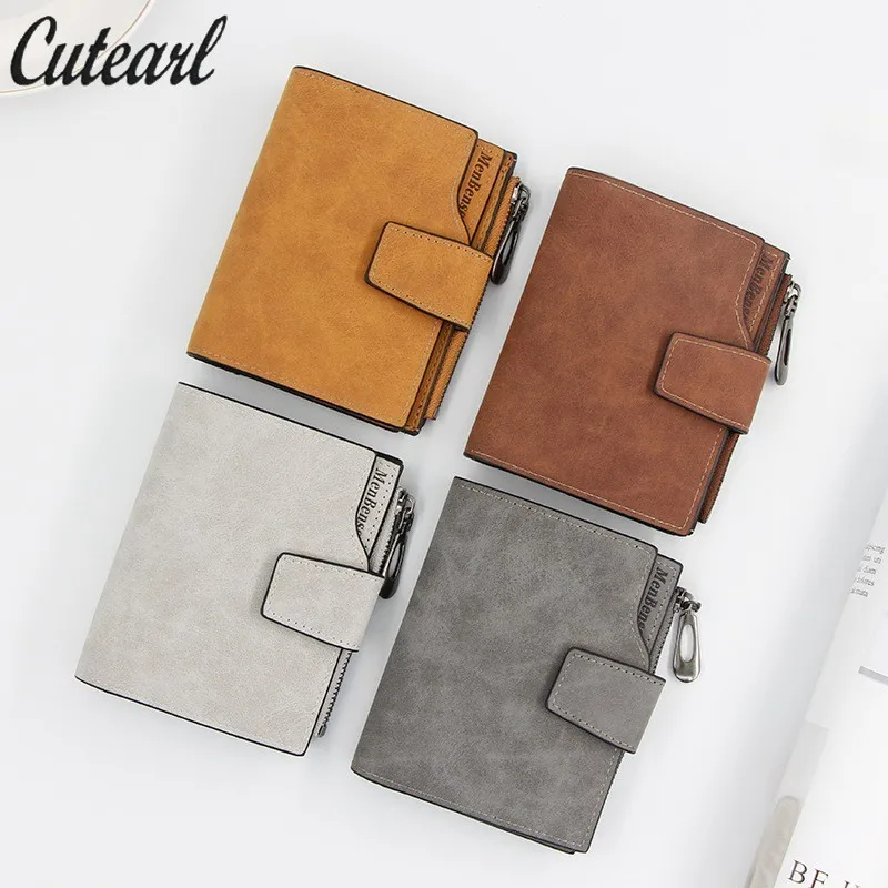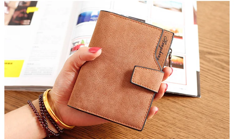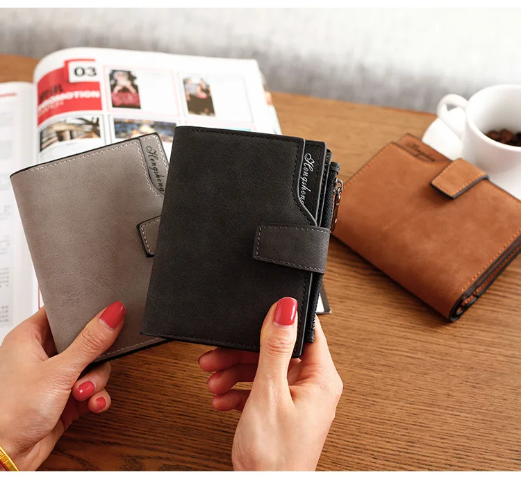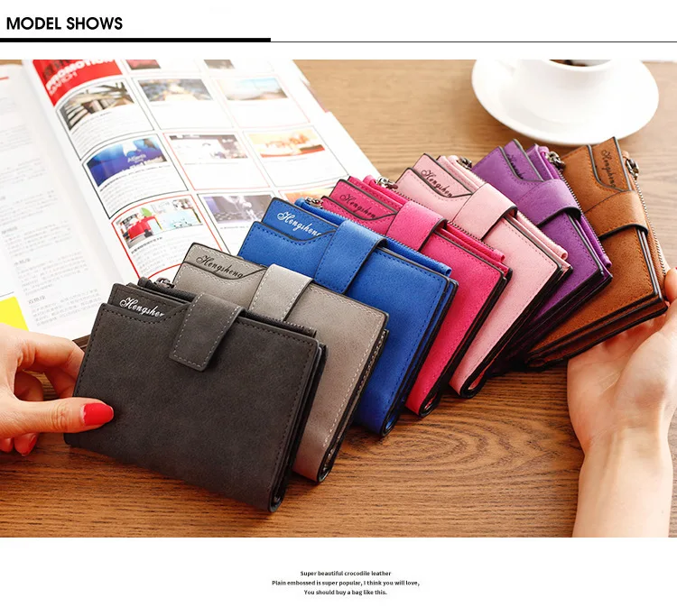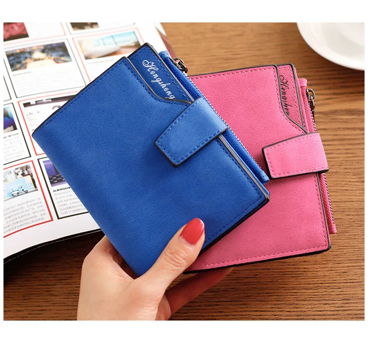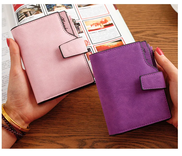 Кошелек женский из искусственной кожи, розовый, черный, фиолетовый, синий, серый, коричневый, держатель для карт, на молнии, короткий женский кошелек, 2020