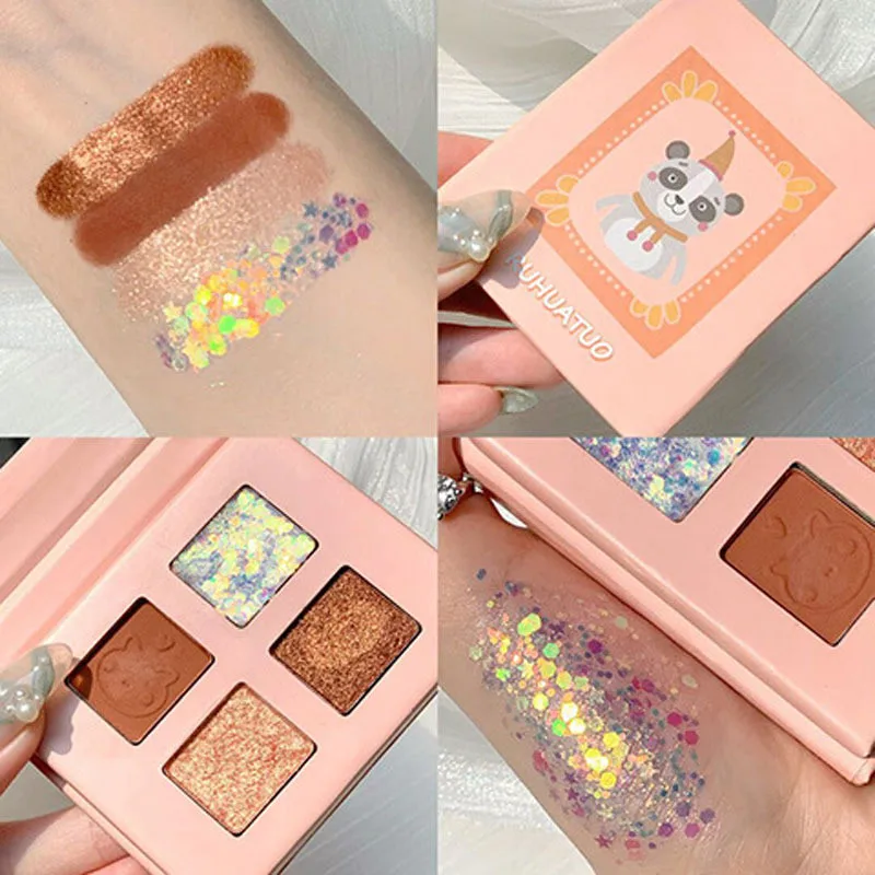 4 цвета милые животные матовые блестящие тени для век Палитра мерцающие и блестящие розовые перламутровые водонепроницаемые тени для век с блестками палитра