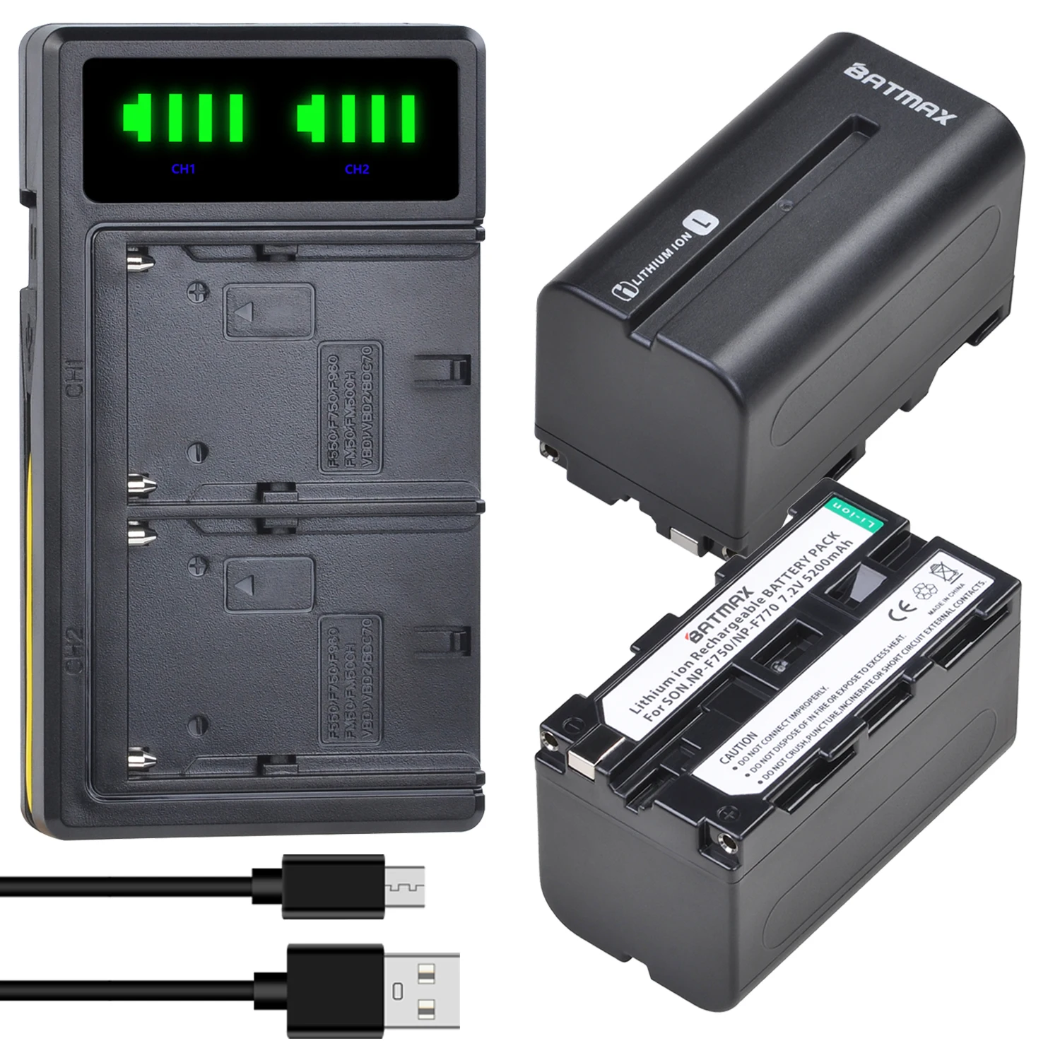 Аккумулятор Batmax 5200 мАч NP-F750 F750 + новое светодиодное двойное зарядное устройство USB для Sony NP F970 F960 F550 F570 QM91D NP-F770 TRU47E