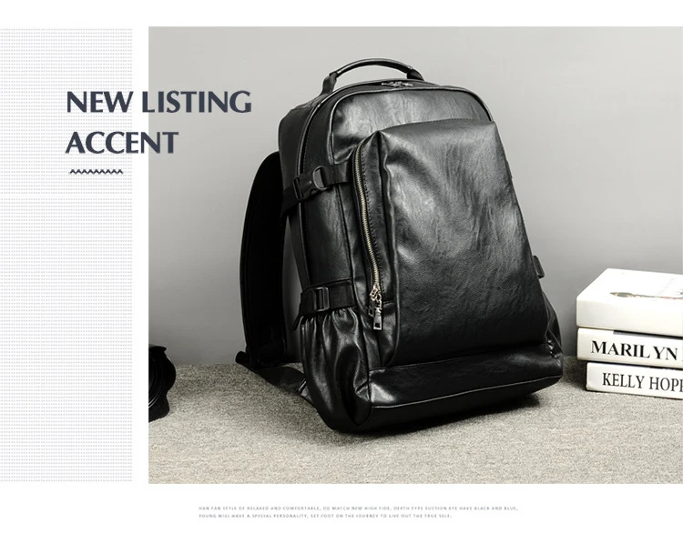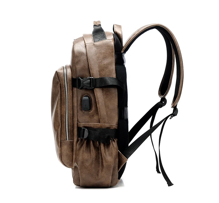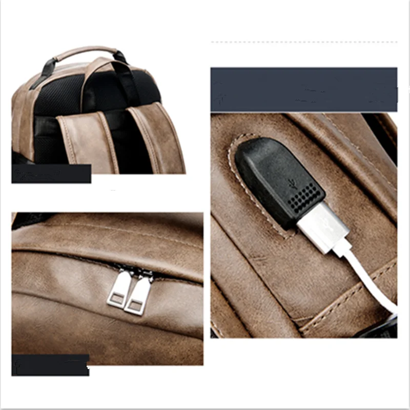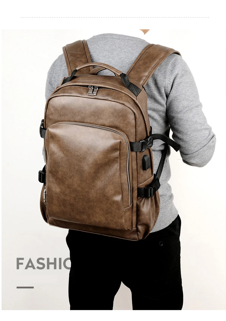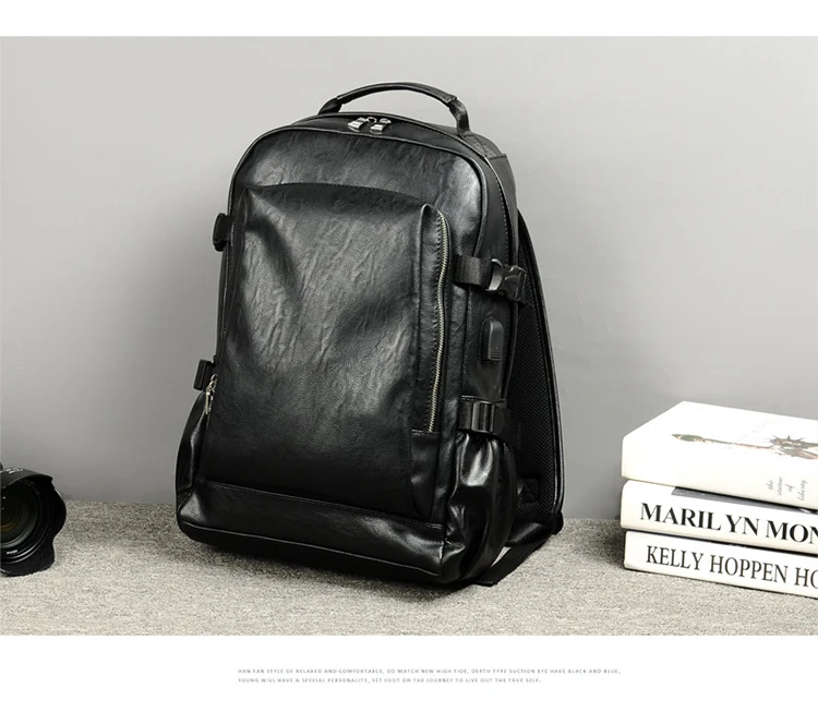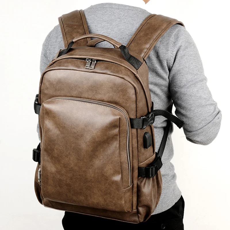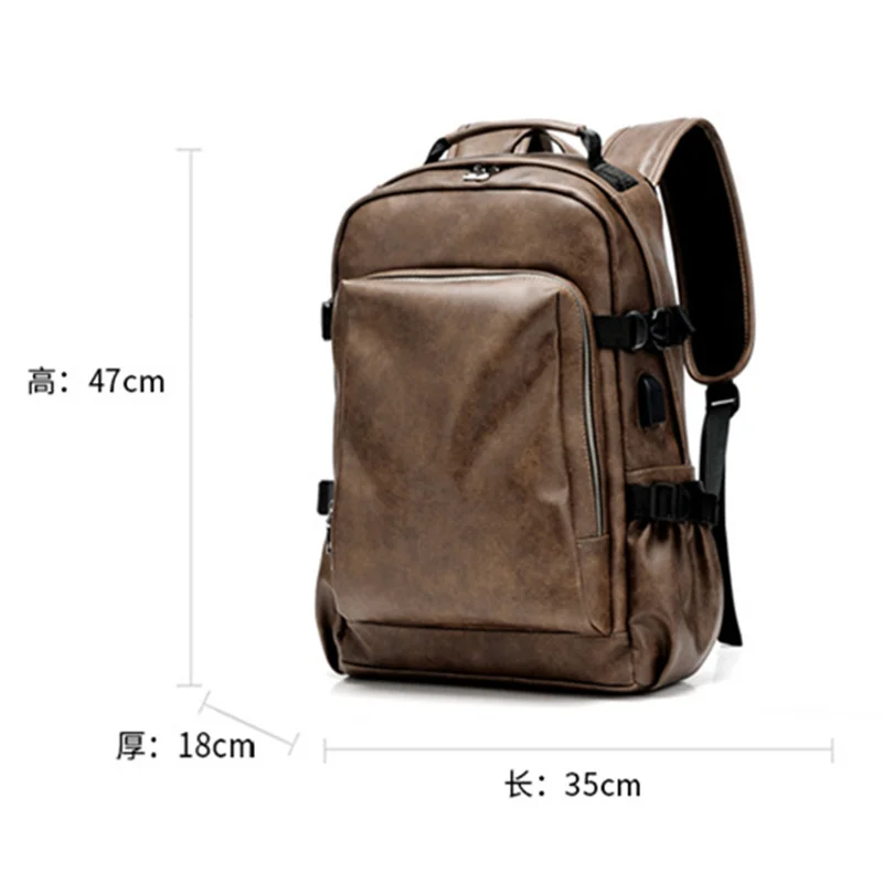 Рюкзак мужской, из искусственной кожи, с выходом USB для зарядки и защитой от кражи, черный
