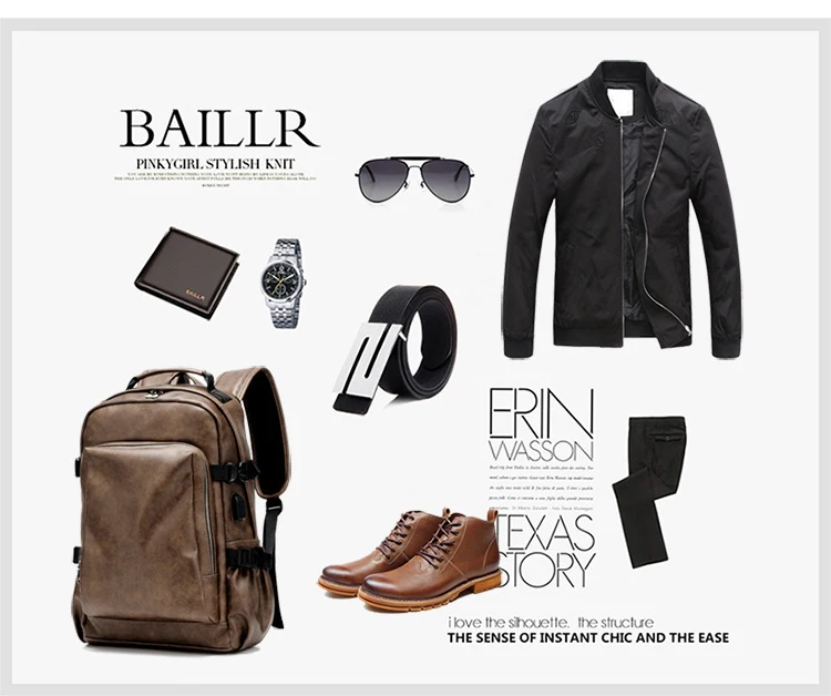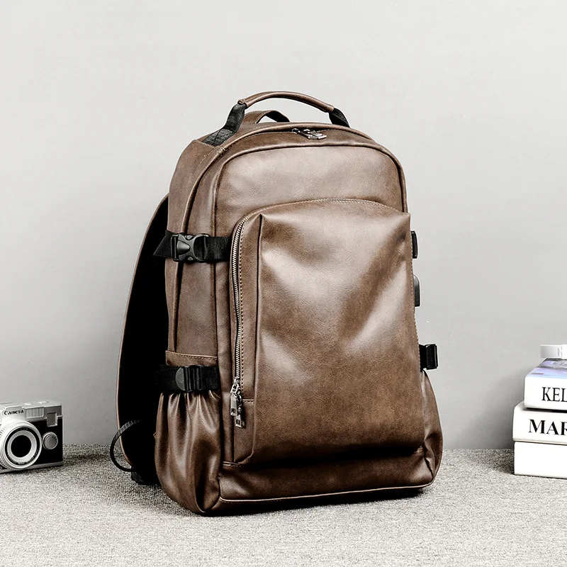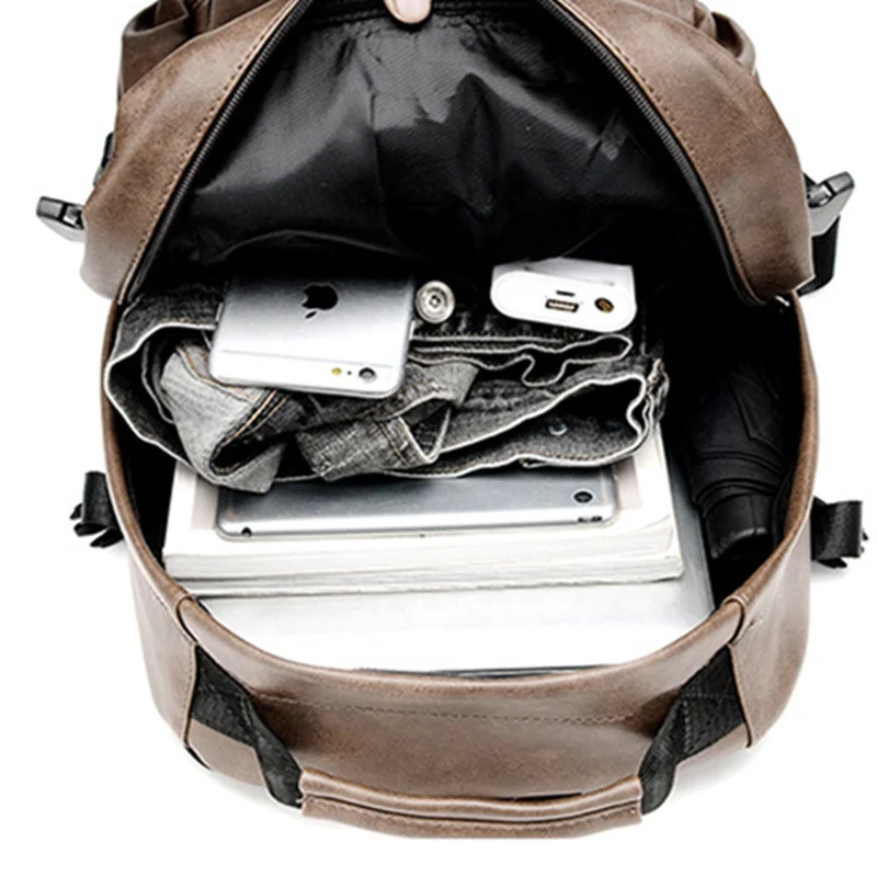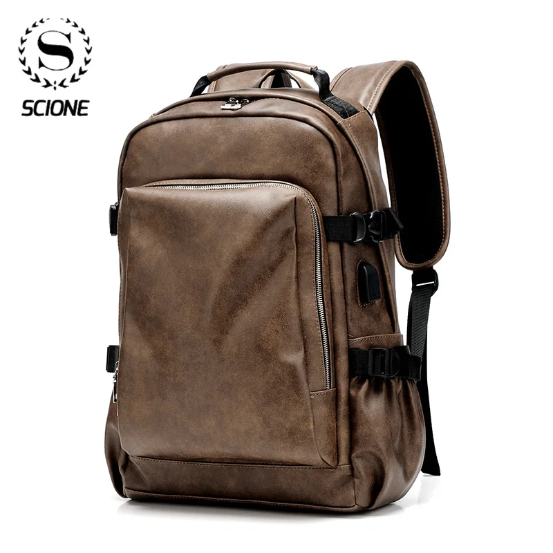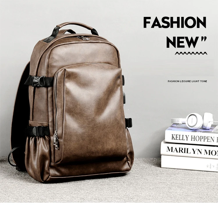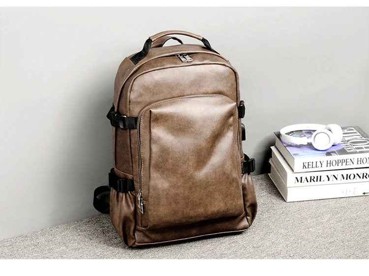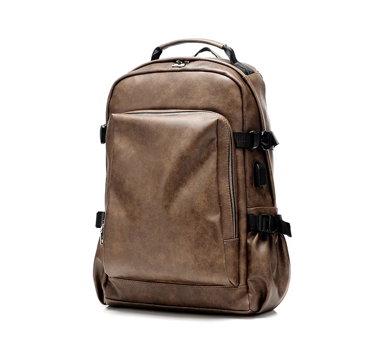 Рюкзак мужской, из искусственной кожи, с выходом USB для зарядки и защитой от кражи, черный