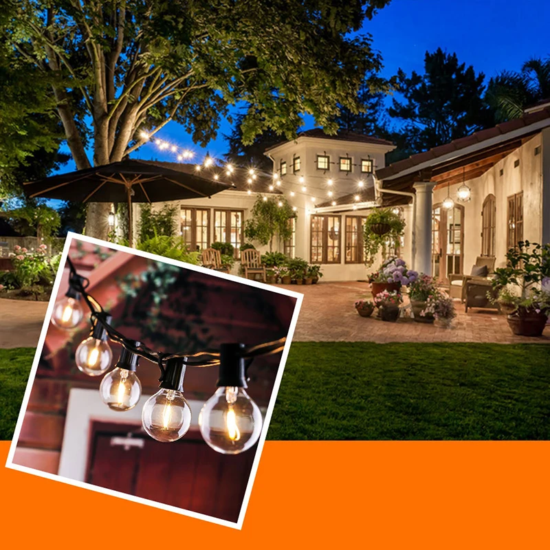 Гирлянда G40 с питанием от солнечной батареи, вечерние чный шнурок с круглыми лампочками, 25 прозрачных винтажных лампочек теплого белого света, декоративное уличное освещение для заднего двора