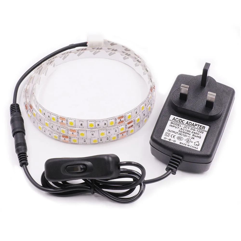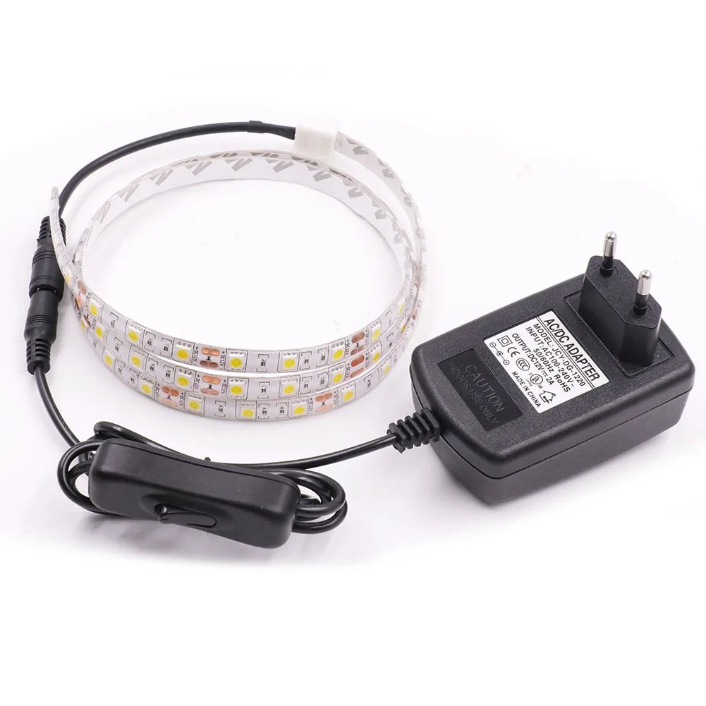 Светодиодная лента DC 12 В 5050 SMD 60 светодиодныйm с переключателем управления адаптером питания Водонепроницаемая светодиодная лента синийзеленыйтеплый белыйтемно-красный