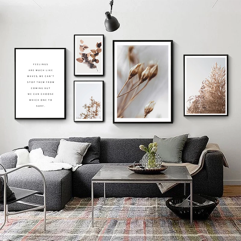 Скандинавский постер на стену с изображением падающих песка Тростни...