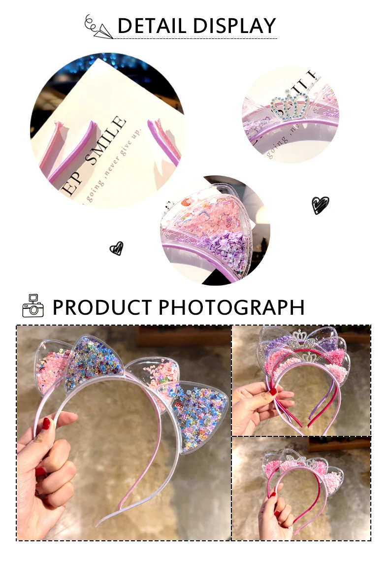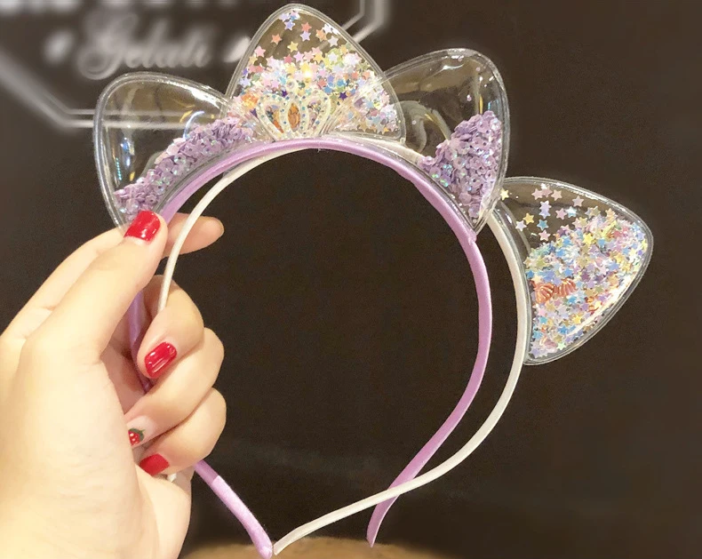 Повязка на голову с кошачьими ушками и блестками для девочек