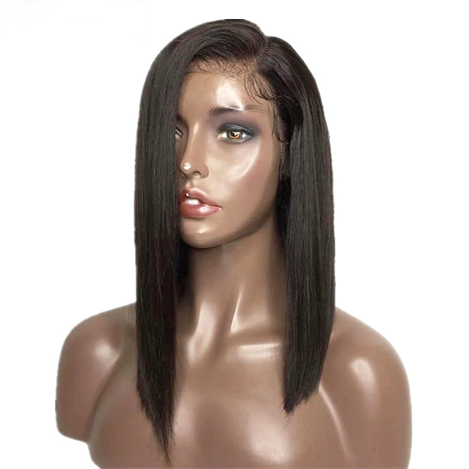 Прямые короткие парики из человеческих волос, 13 х4, малайзийские передние парики на сетке, плотность 150%, передние парики на сетке, предварительно выщипанные для черных женщин