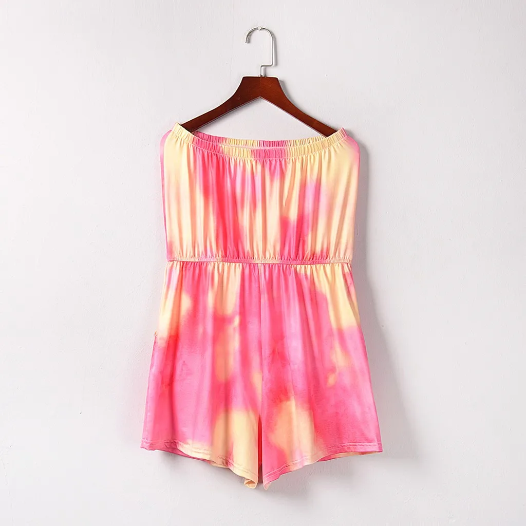 Женский короткий комбинезон со звездами, без бретелек, пляжный богемный Летний комбинезон без рукавов, комбинезон с брюками, одежда для женщин