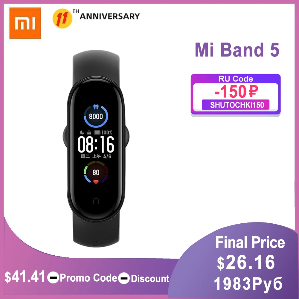 Умный Фитнес-браслет Xiaomi Mi Band 5, глобальная версия, 9 языков,...