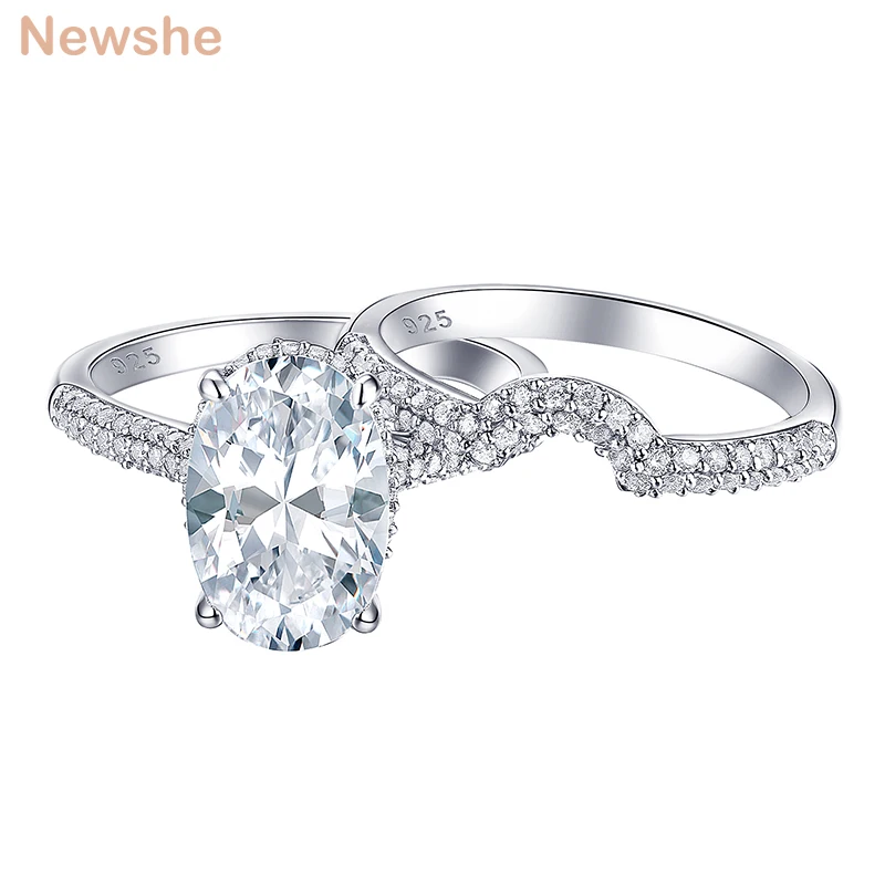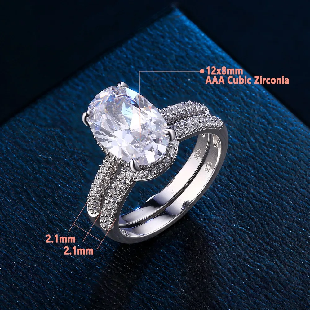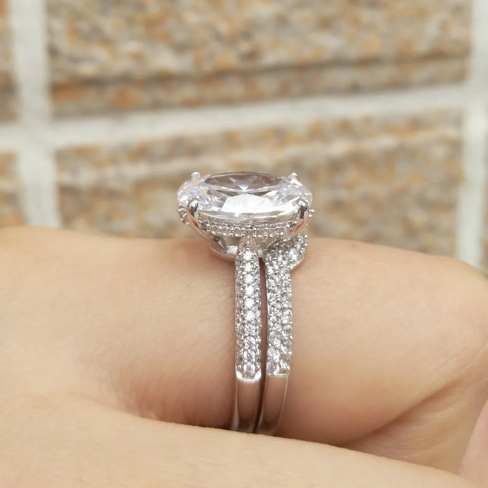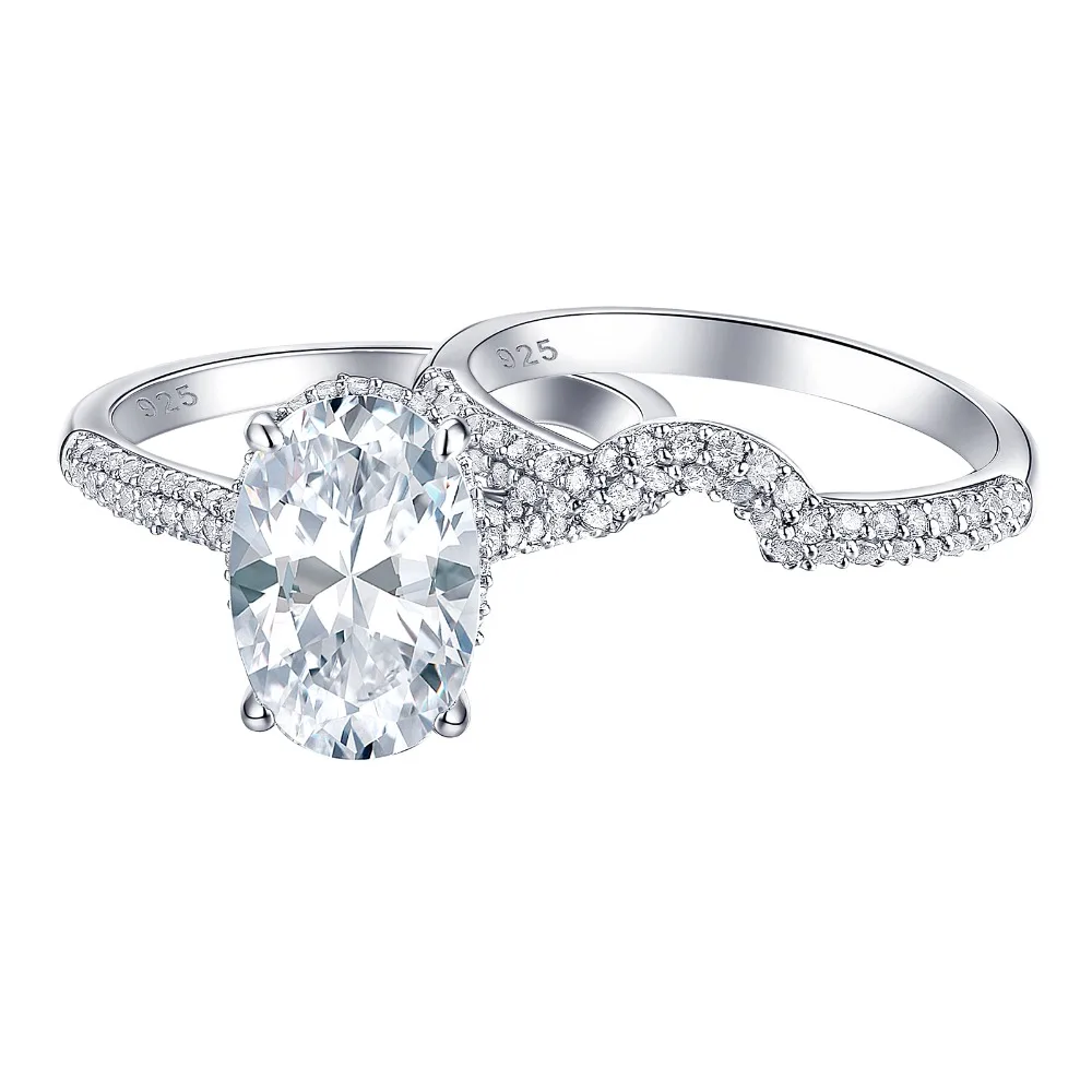 Новинка, 2 предмета, цельное обручальное кольцо из стерлингового серебра 925 пробы, свадебный набор, овальная форма, ааааа, циркон, грандиозное ювелирное изделие, BR0875
