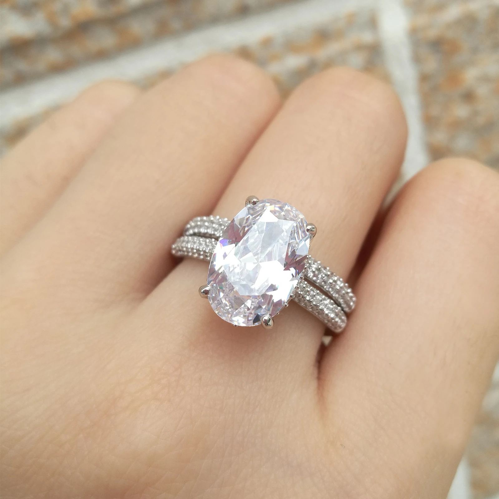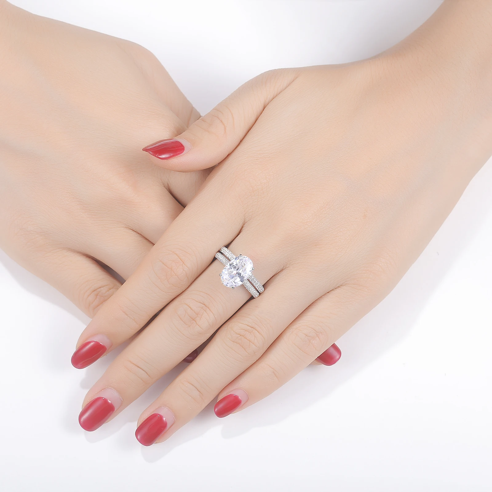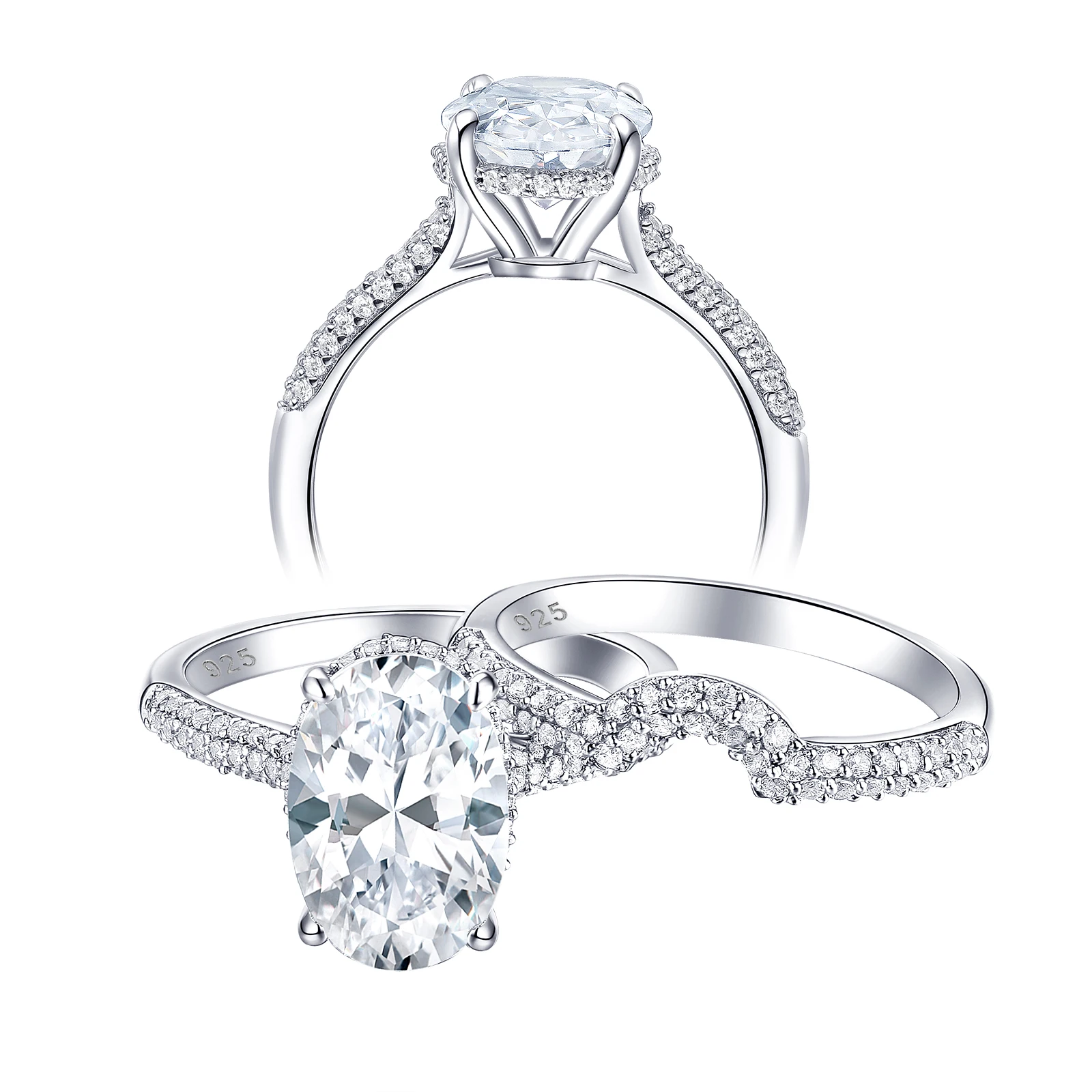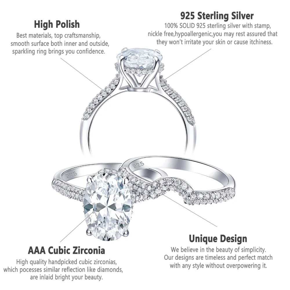 Новинка, 2 предмета, цельное обручальное кольцо из стерлингового серебра 925 пробы, свадебный набор, овальная форма, ааааа, циркон, грандиозное ювелирное изделие, BR0875