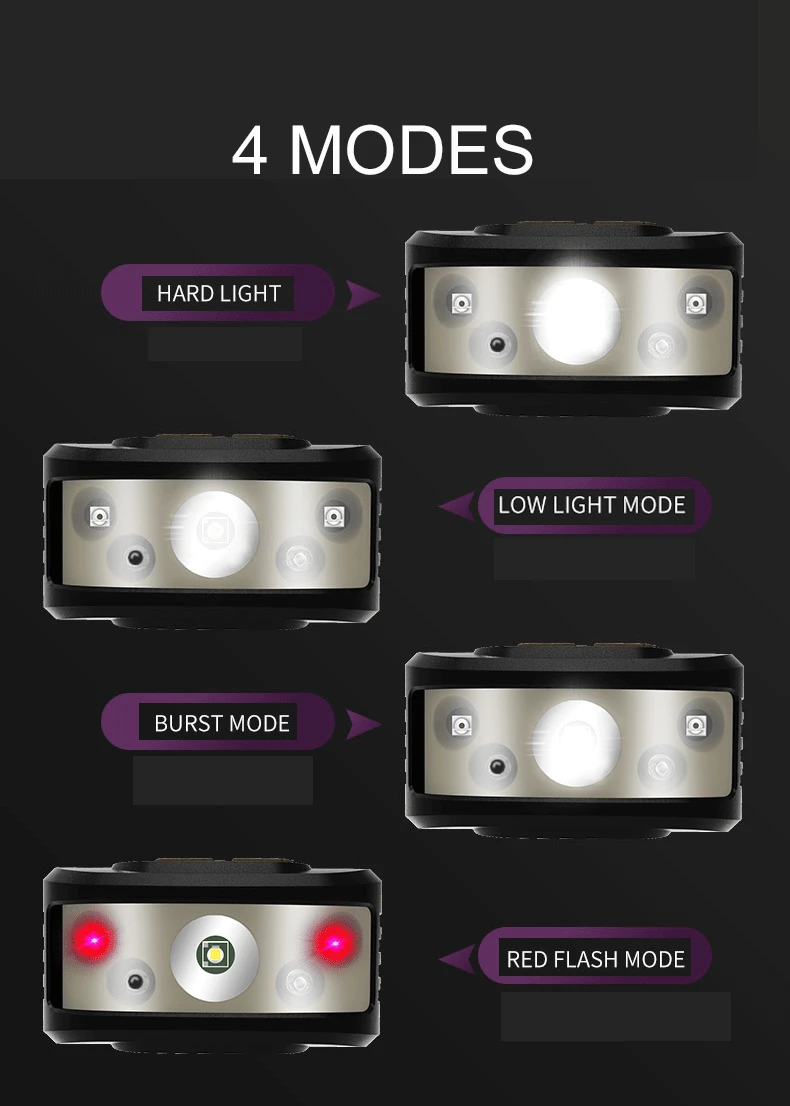 Мощный налобный фонарь флэш-светильник, 8000 Люмен USB Перезаряжаемые головной светильник, 4 режима работы светильник, Водонепроницаемый головной светильник s с движения Сенсор и встроенный батареи для использования на открытом воздухе, лучше всего подходит для кемпинга, рыбалки, бытовая