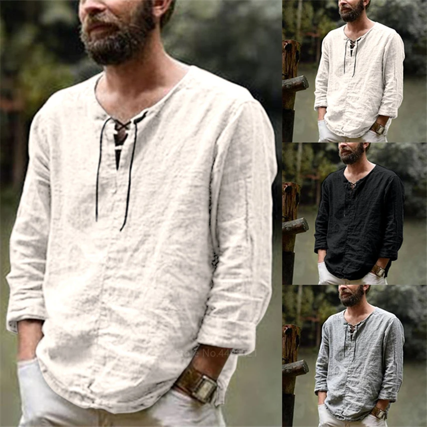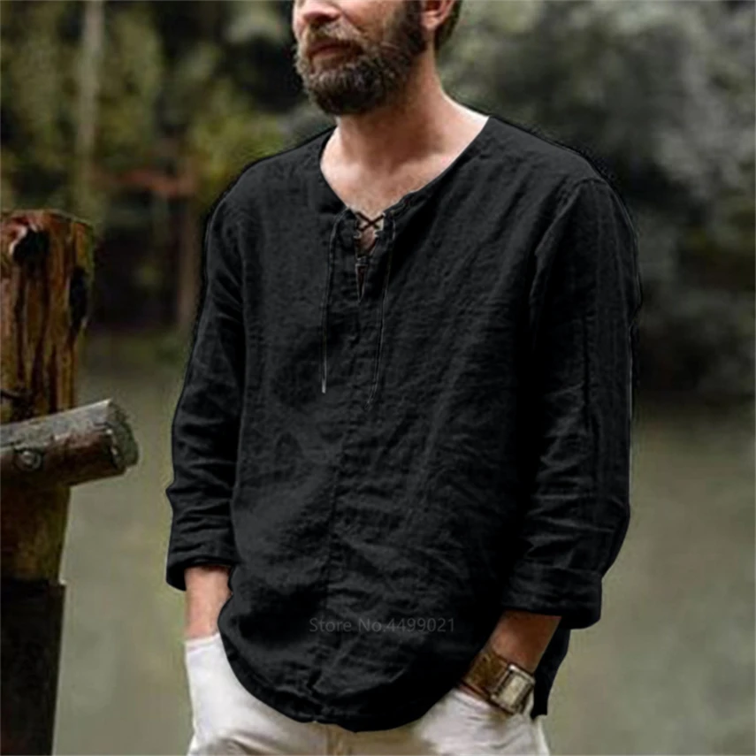 Средневековые костюмы для взрослых мужчин с длинным рукавом, однотонный кружевной топ на Хэллоуин, карнавал, Средневековья, винтажная одежда