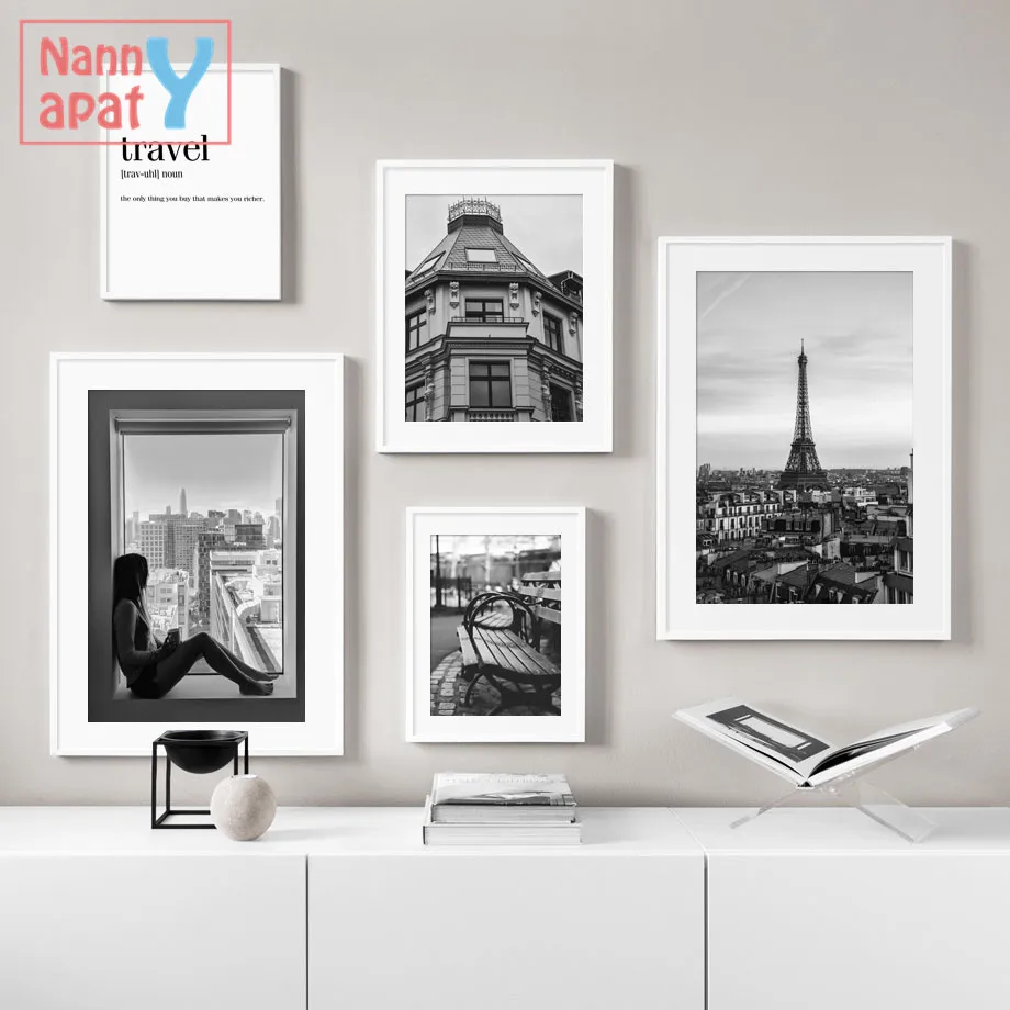 Ретро черно-белая башня Парижа, уличное кресло, девушка, настенное искусство, холст, живопись, скандинавские плакаты, настенные картины, украшение для гостиной