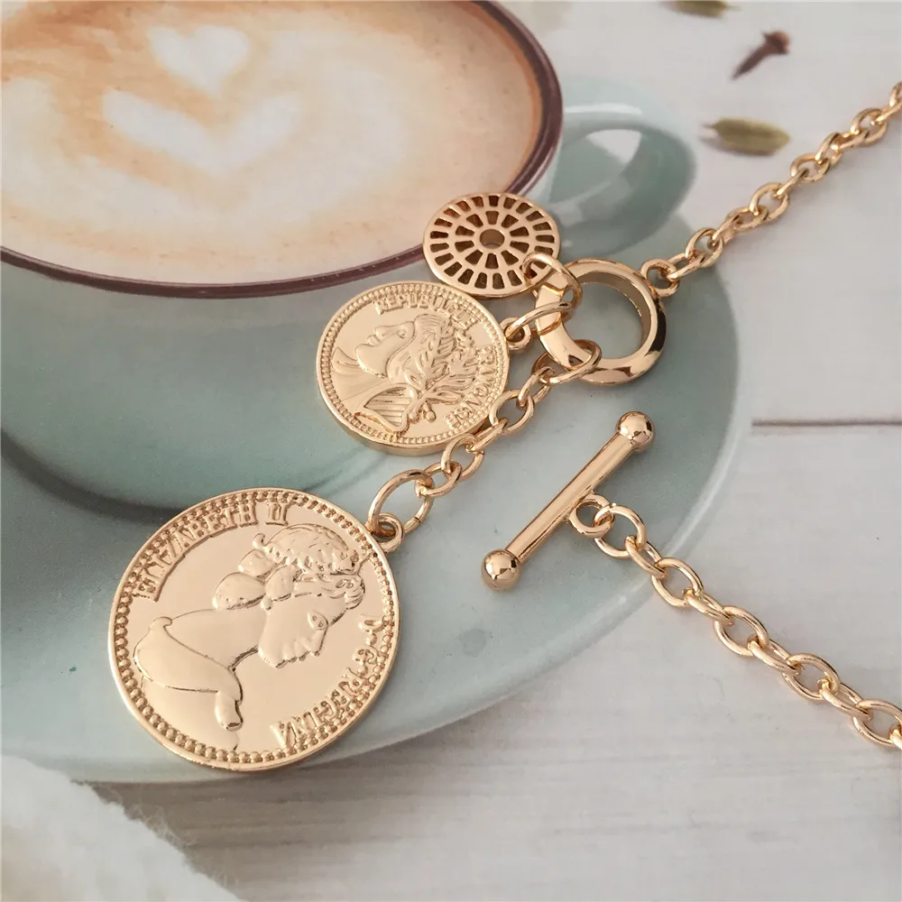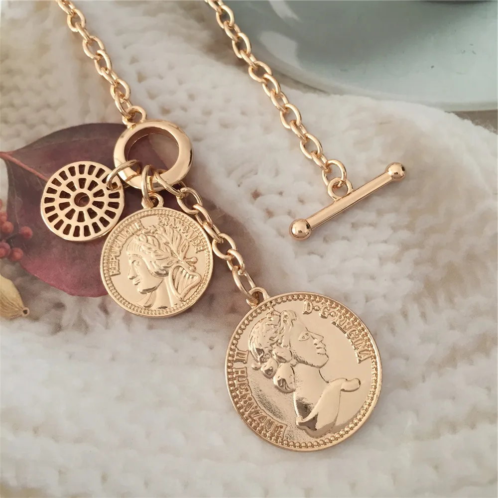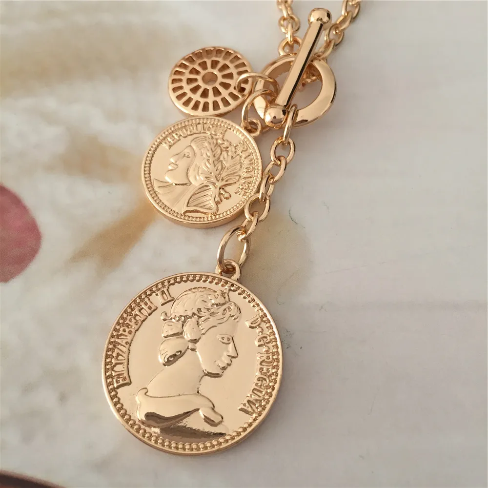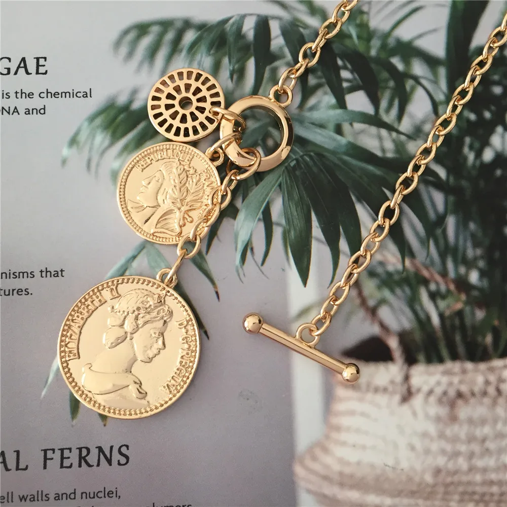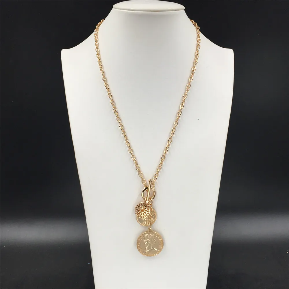 Элегантная позолоченная монета с круглая филигрань Т-образный стержень, ожерелье для женщин, великолепные богемные модные украшения