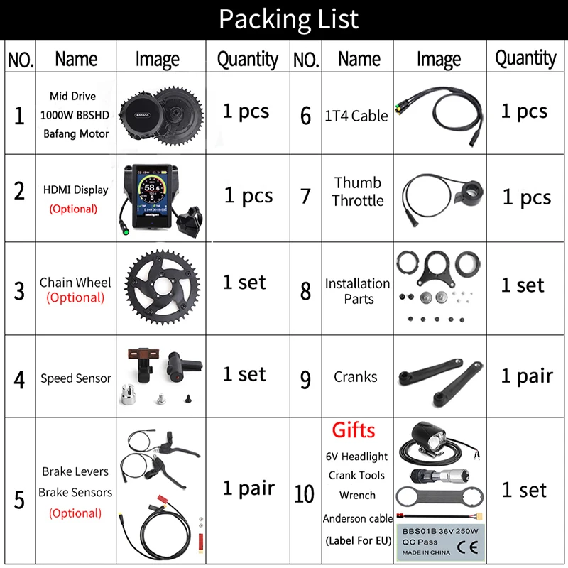 Подарки: Гаечный ключ + фара 6 в + Кривошипные инструменты + кабель XT60 + наклейки 250 (только для ЕС и Канады)