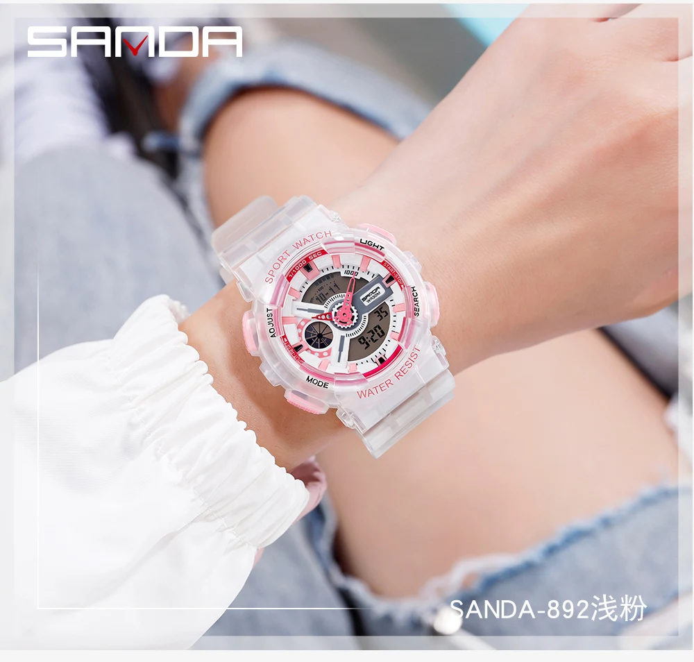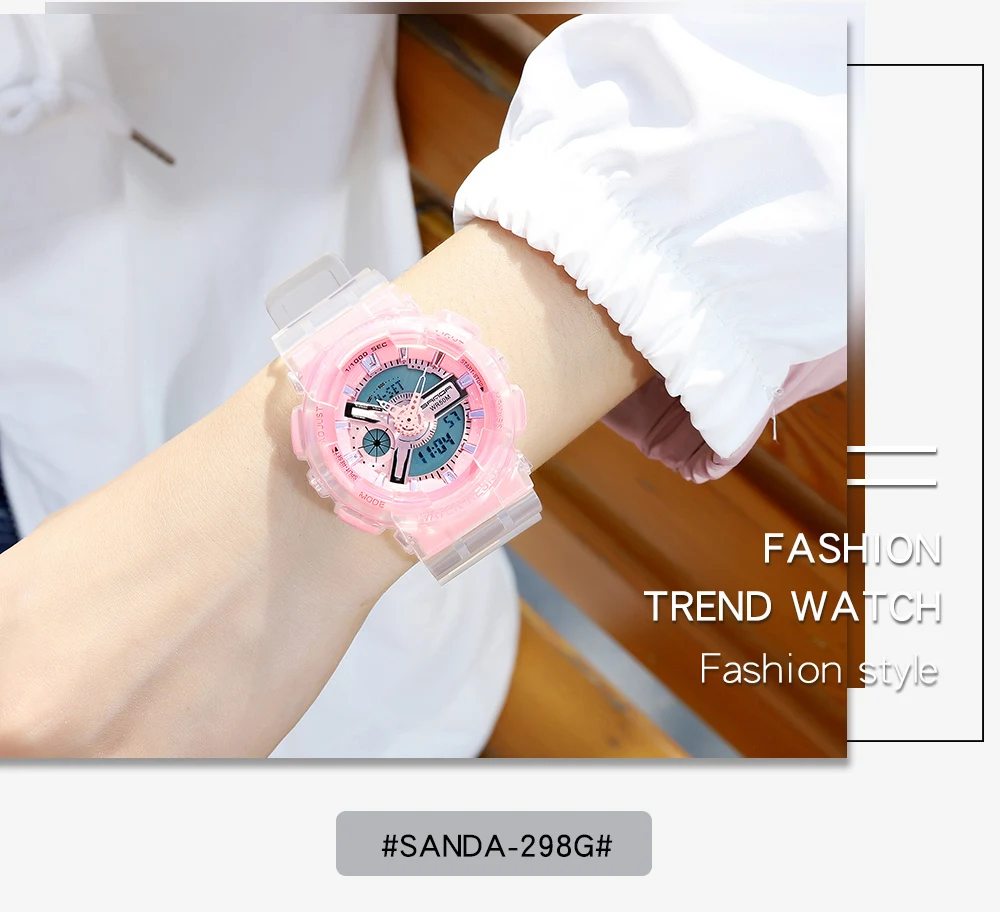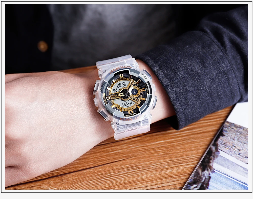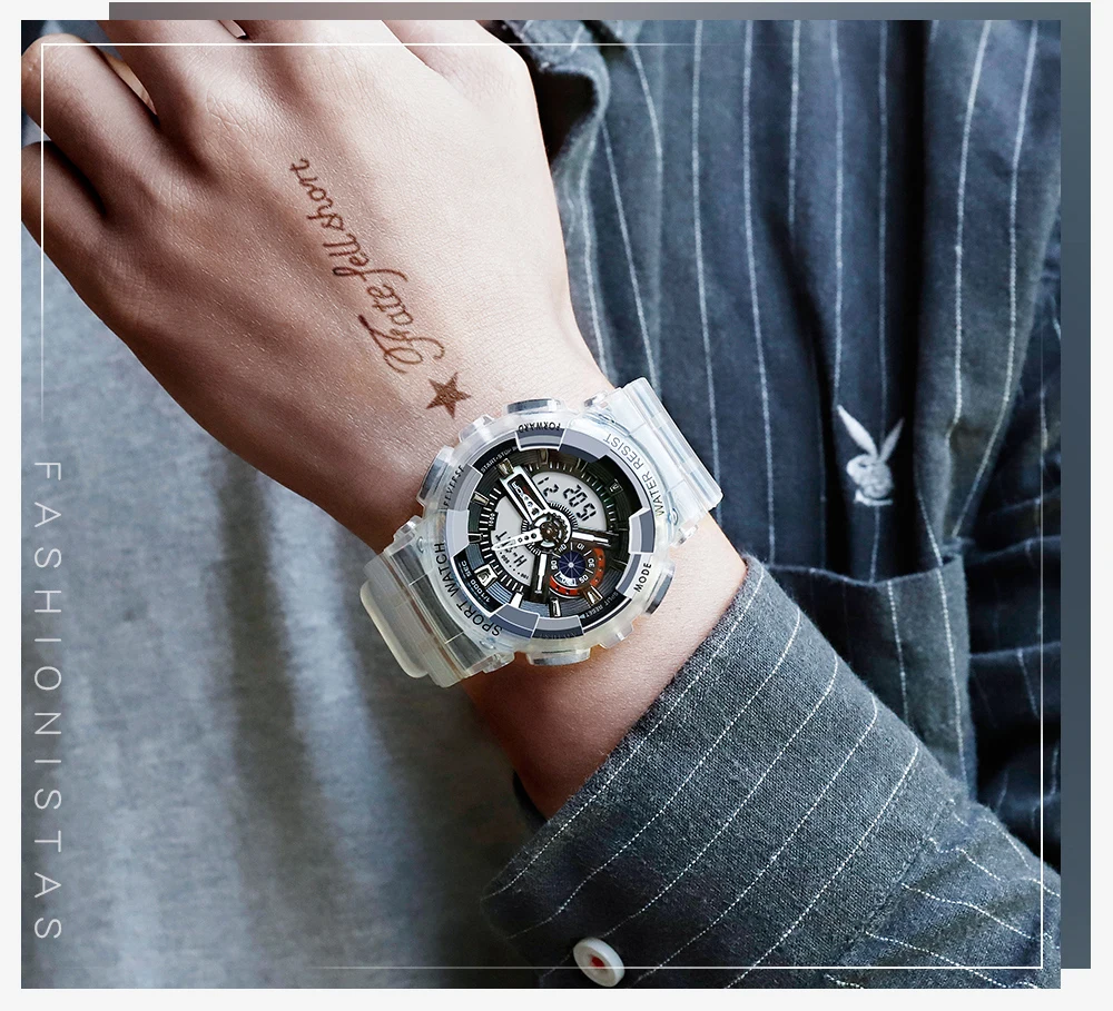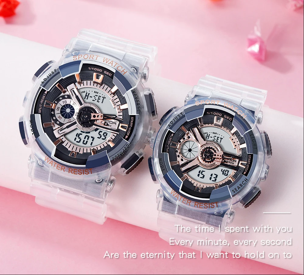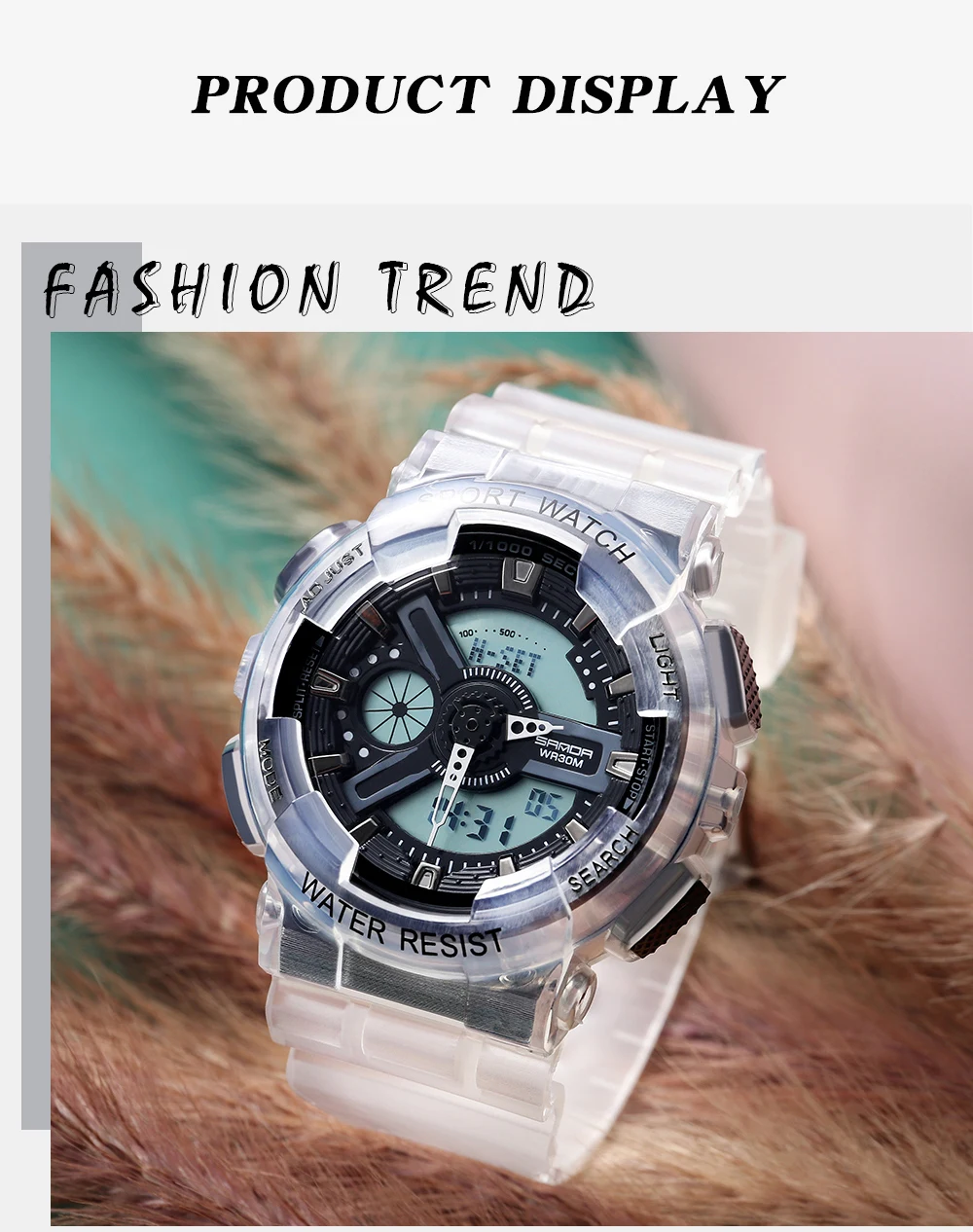 Часы наручные Sanda мужскиеженские прозрачные, брендовые Водонепроницаемые многофункциональные светящиеся спортивные с двойным дисплеем, для влюбленных