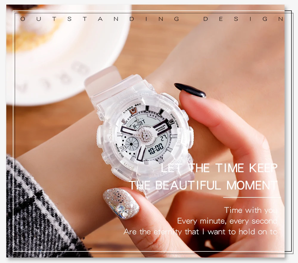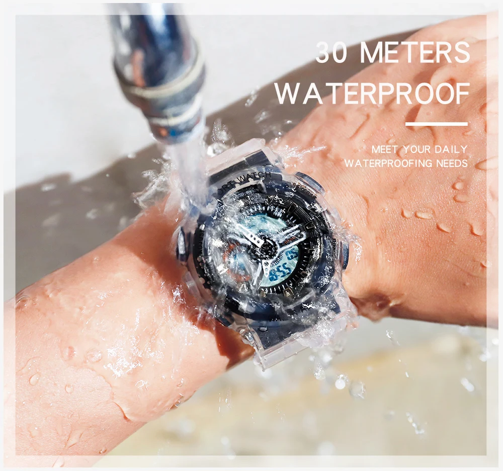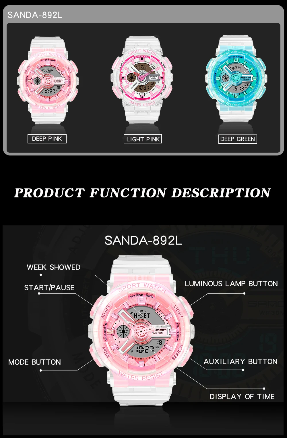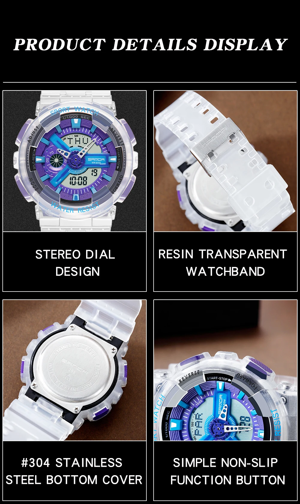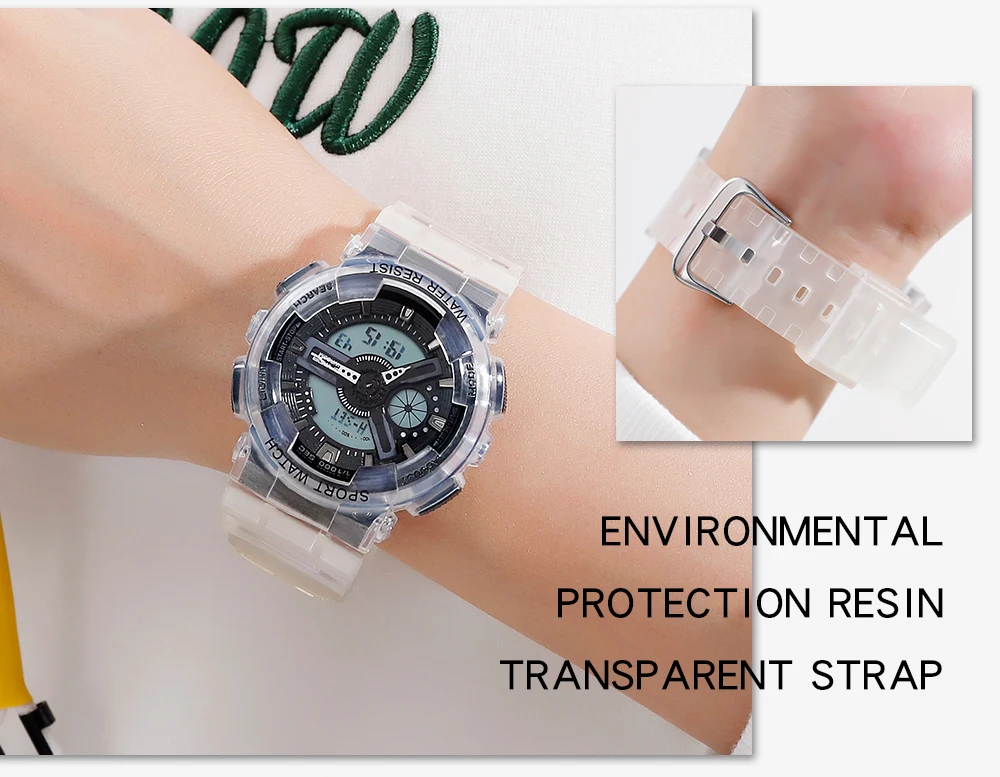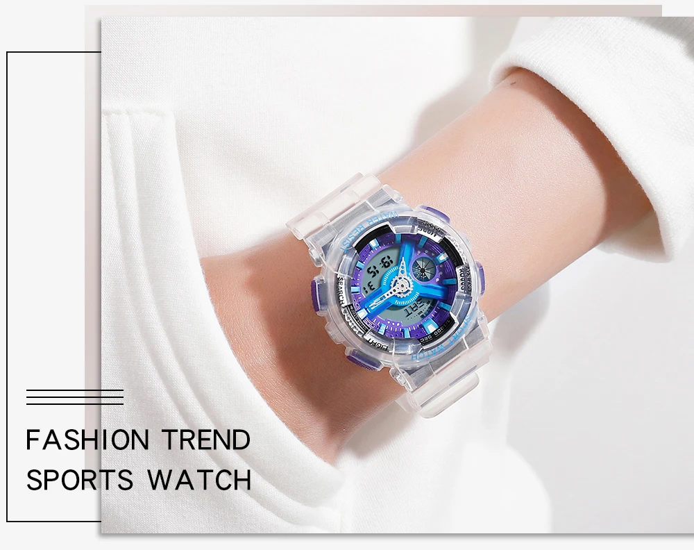 Часы наручные Sanda мужскиеженские прозрачные, брендовые Водонепроницаемые многофункциональные светящиеся спортивные с двойным дисплеем, для влюбленных