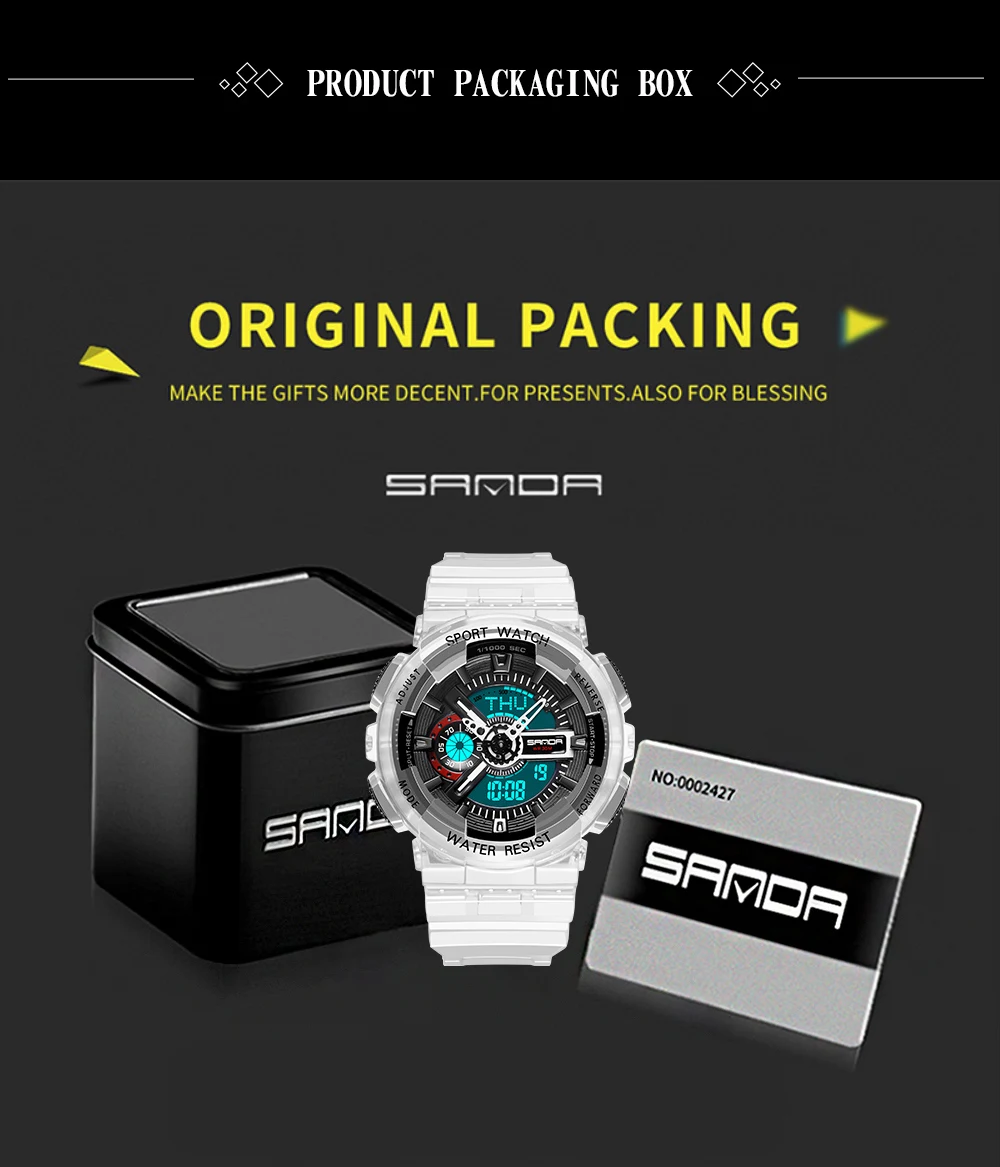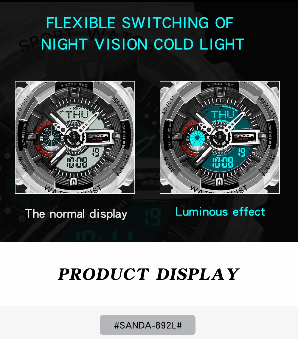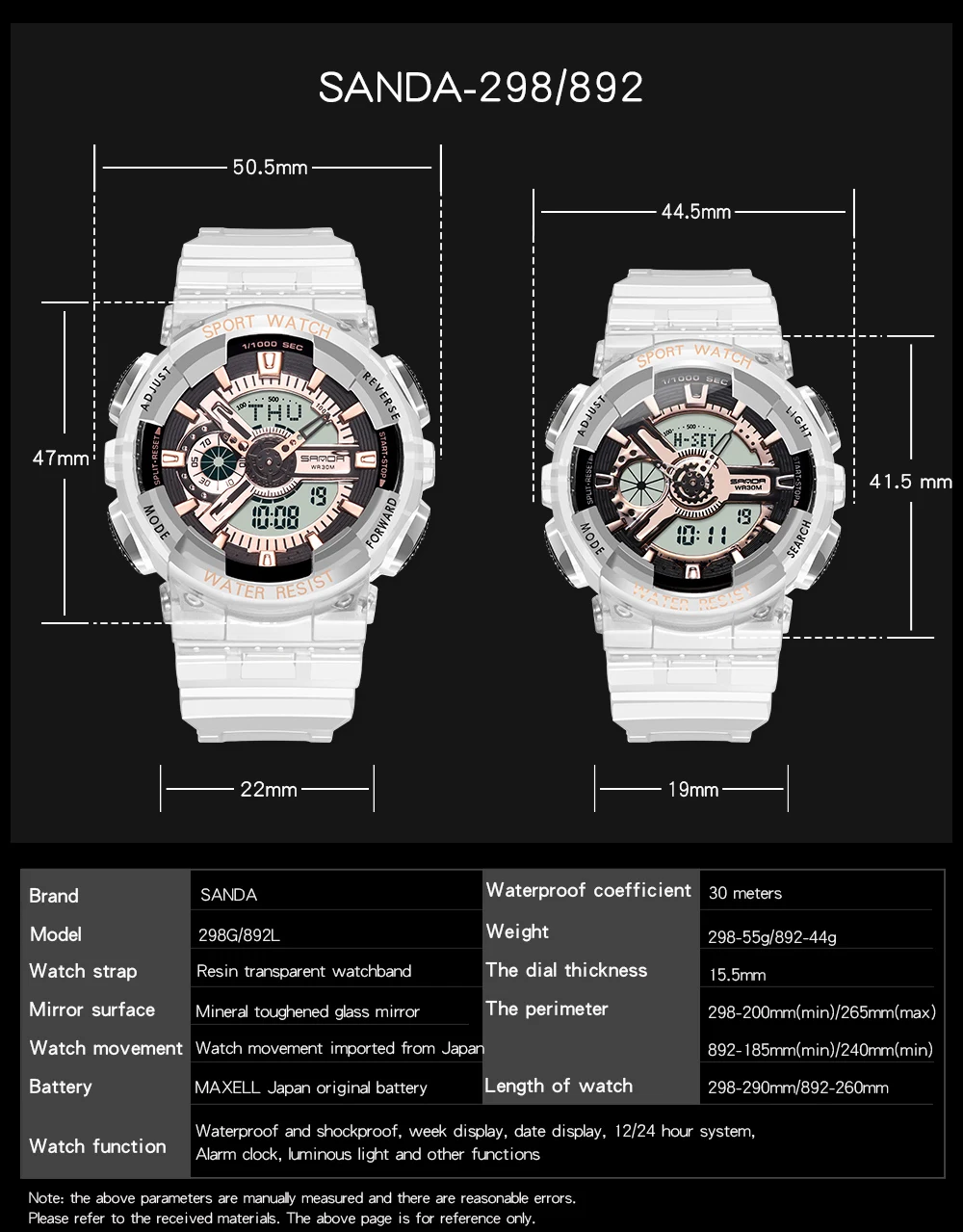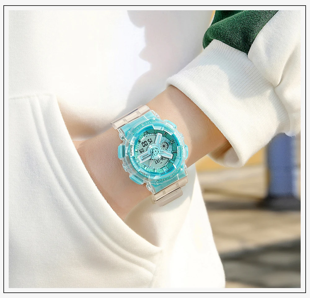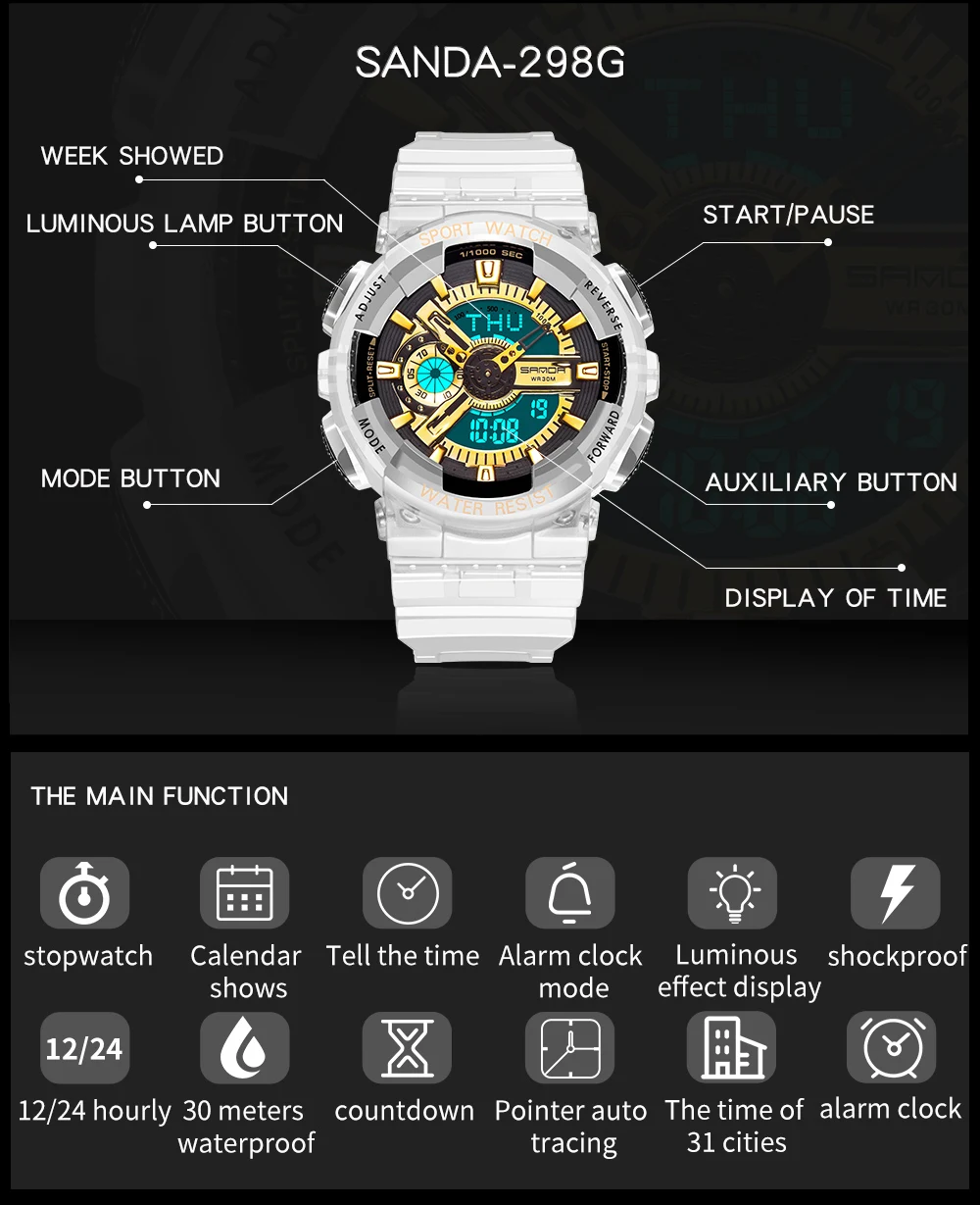 Часы наручные Sanda мужскиеженские прозрачные, брендовые Водонепроницаемые многофункциональные светящиеся спортивные с двойным дисплеем, для влюбленных