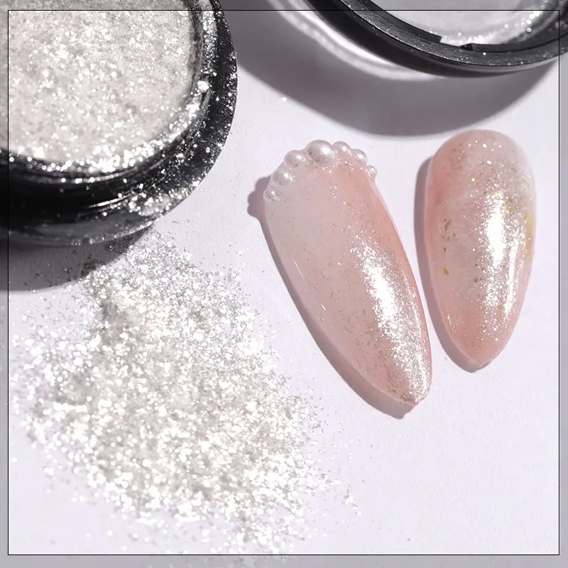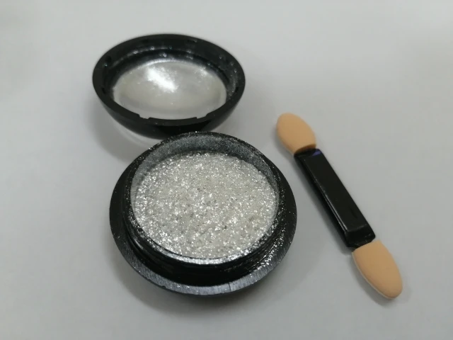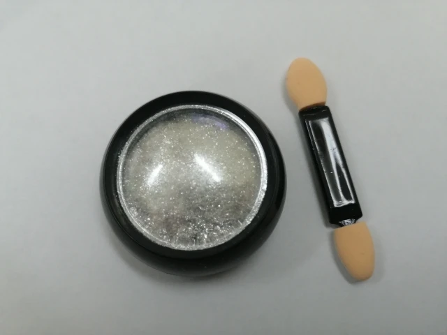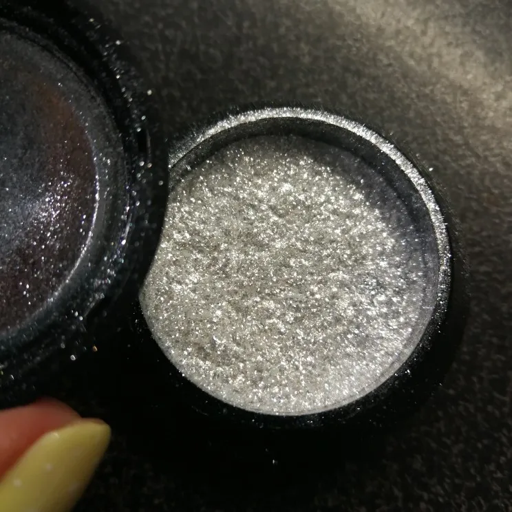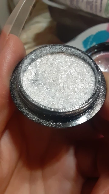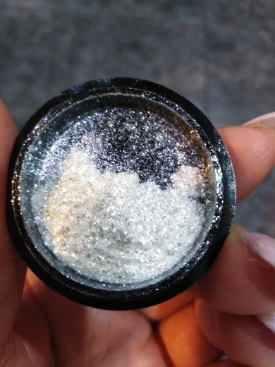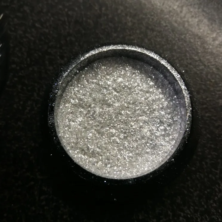 Красивый порошочек. Мелко перемолотая слюда. Как втирка и как посыпушка смотрится не очень. Но если добавлять отдельными элементами в дизайн, смотрится красиво. Красивое серебро. Очень летучий правда, поэтому развела с базой. Мне так удобней пользоваться. Спасибо