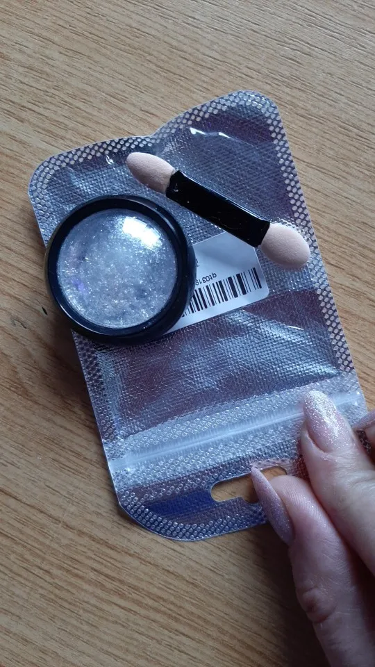 Заказала 11.11 получила в Киеве 9.01.Выглядит не так как на картинке это мелкие белые и серебристые хлопья,а не втирка.По количеству очень мало где то пол коробочки.В живую покупать бы не стала,мне нужны были чисто белые.