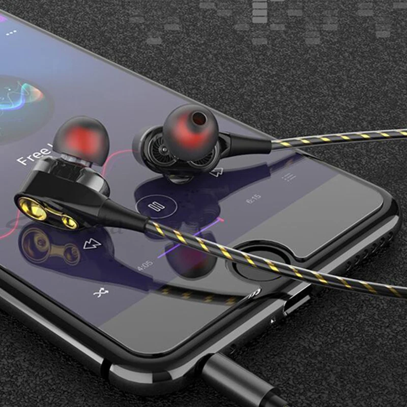 Проводные наушники с высокими басами, двойным приводом, стереонаушники-вкладыши длиной 120 сантиметров, наушники с микрофоном, компьютером и сотовым телефоном