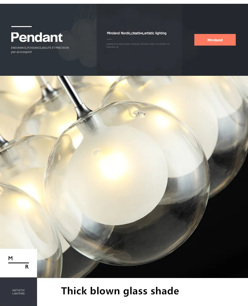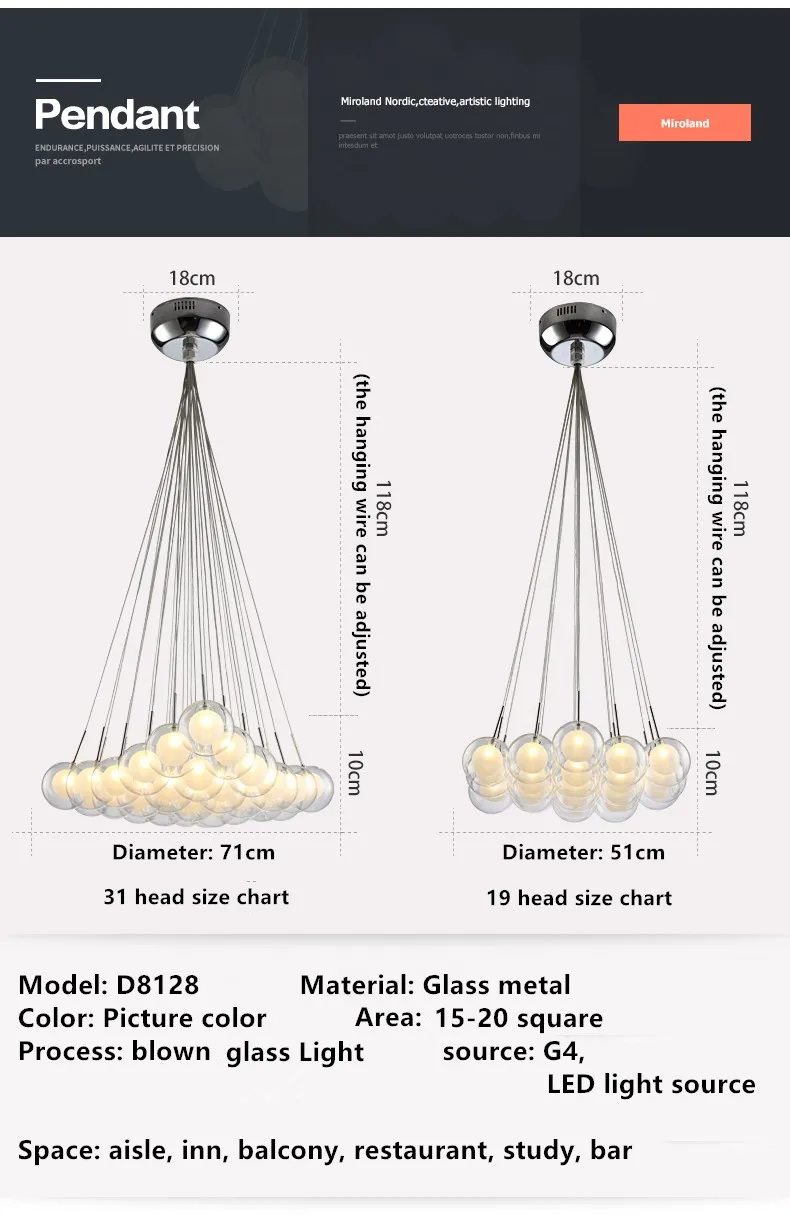 Светодиодная люстра в скандинавском стиле, современная люстра для гостиной 96-220 В, простая стеклянная лампа шар для украшения дома для столовой, спальни