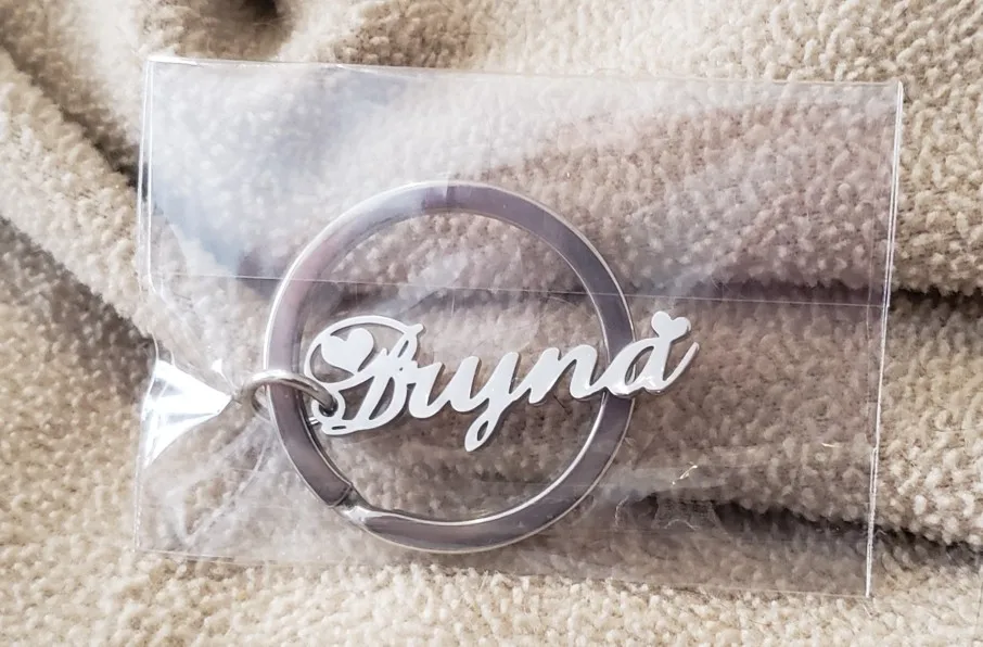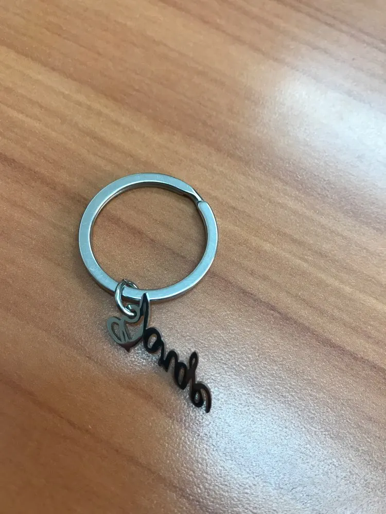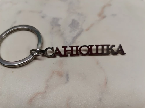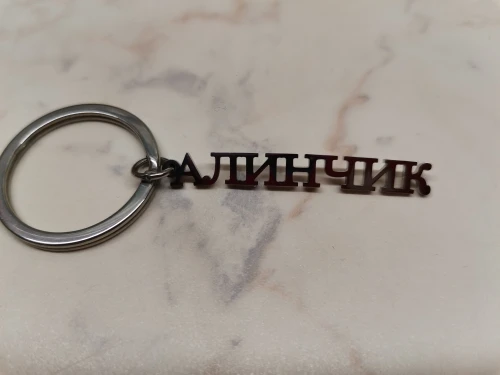 Брелок очень красивый, но мелковатый шрифт. Еще и цепочки нет.