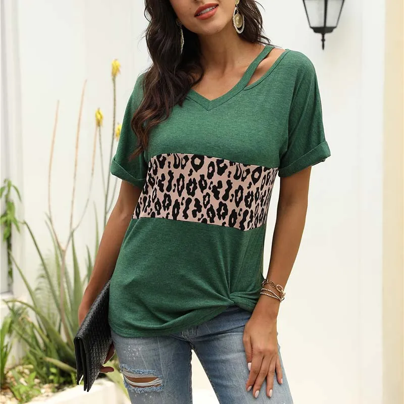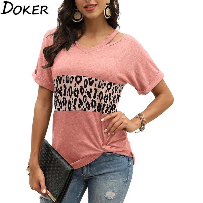 Женская модная леопардовая футболка размера плюс, летняя Винтажная футболка с v-образным вырезом и коротким рукавом 2020, Уличная Повседневная футболка