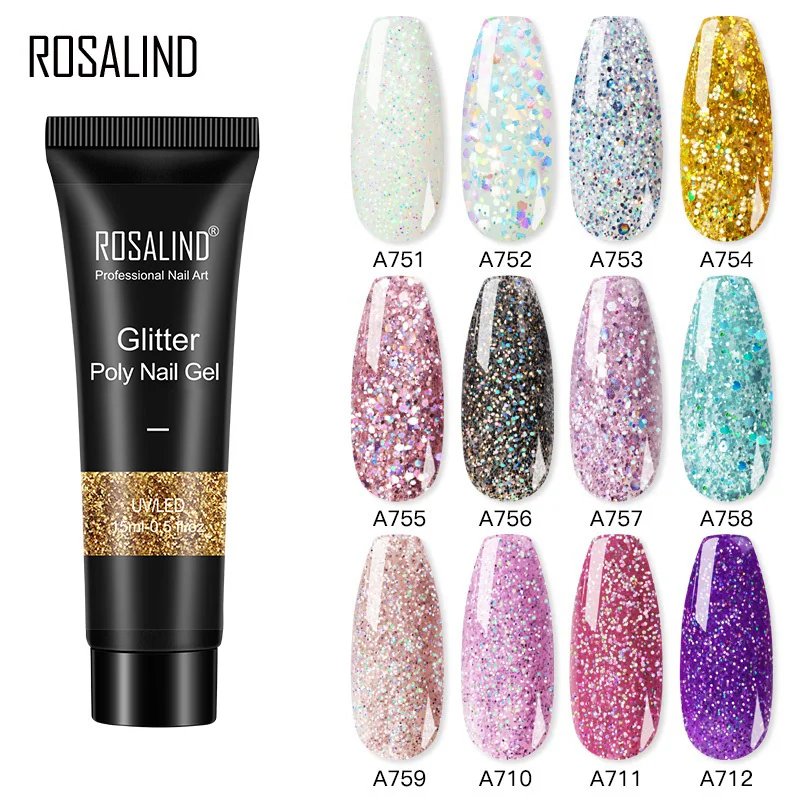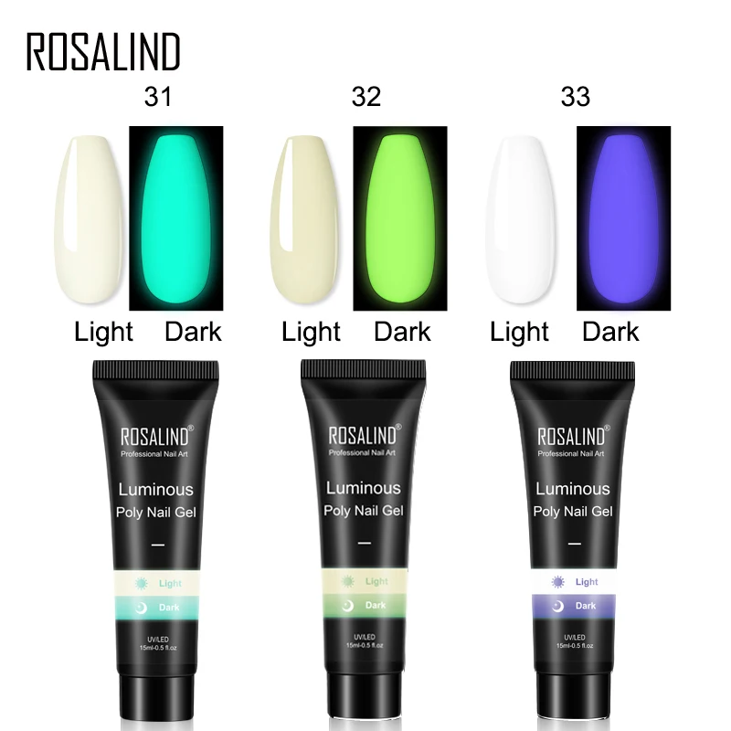 Полигель для наращивания ногтей ROSALIND, Полупостоянный светящийся Гель для маникюра, 15 мл, все для дизайна ногтей