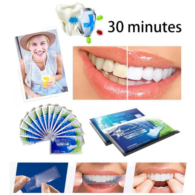 Наши полоски для отбеливания зубов предназначены для инженерной формы верхних и нижних зубных рядов с применением передовой технологии частиц, которая может производить высокоэластичную и вязкую желатиновую пленку, уникальную и имеющую особое напряжение и лучшую эффект retentibity.